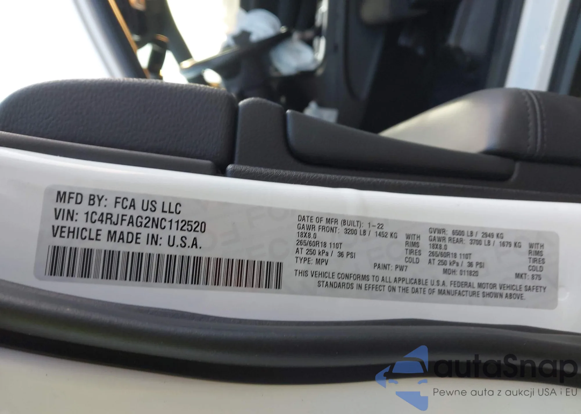 • VIN 1C4RJFAG2NC112520