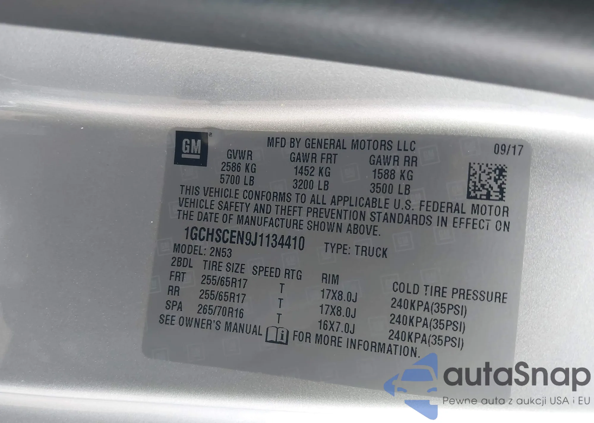 • VIN 1GCHSCEN9J1134410