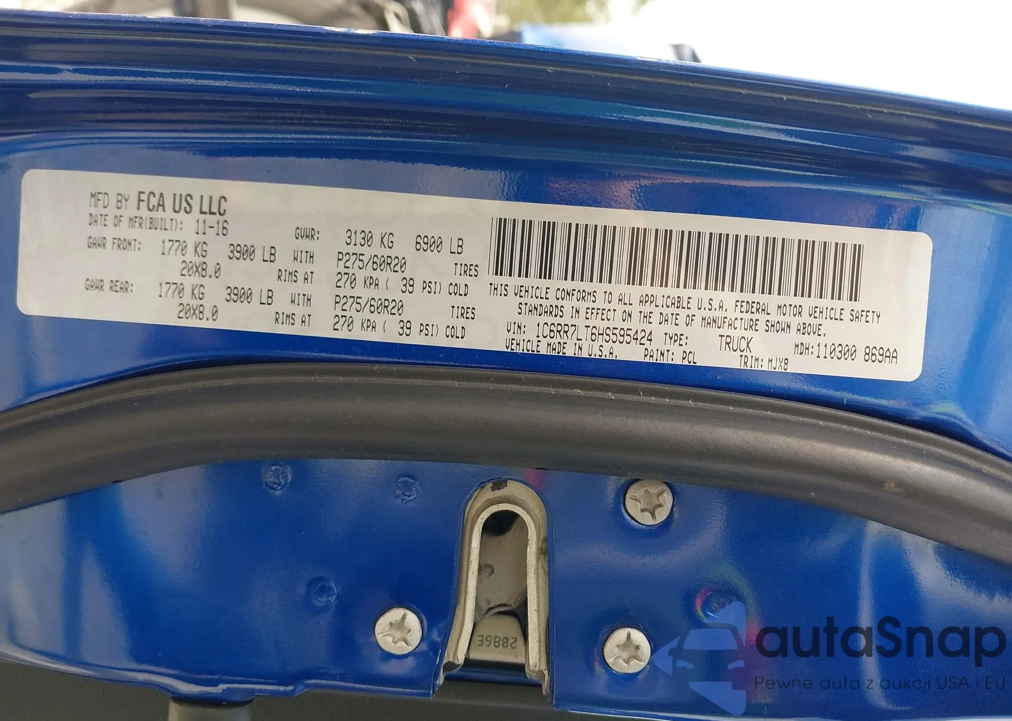 • VIN 1C6RR7LT6HS595424