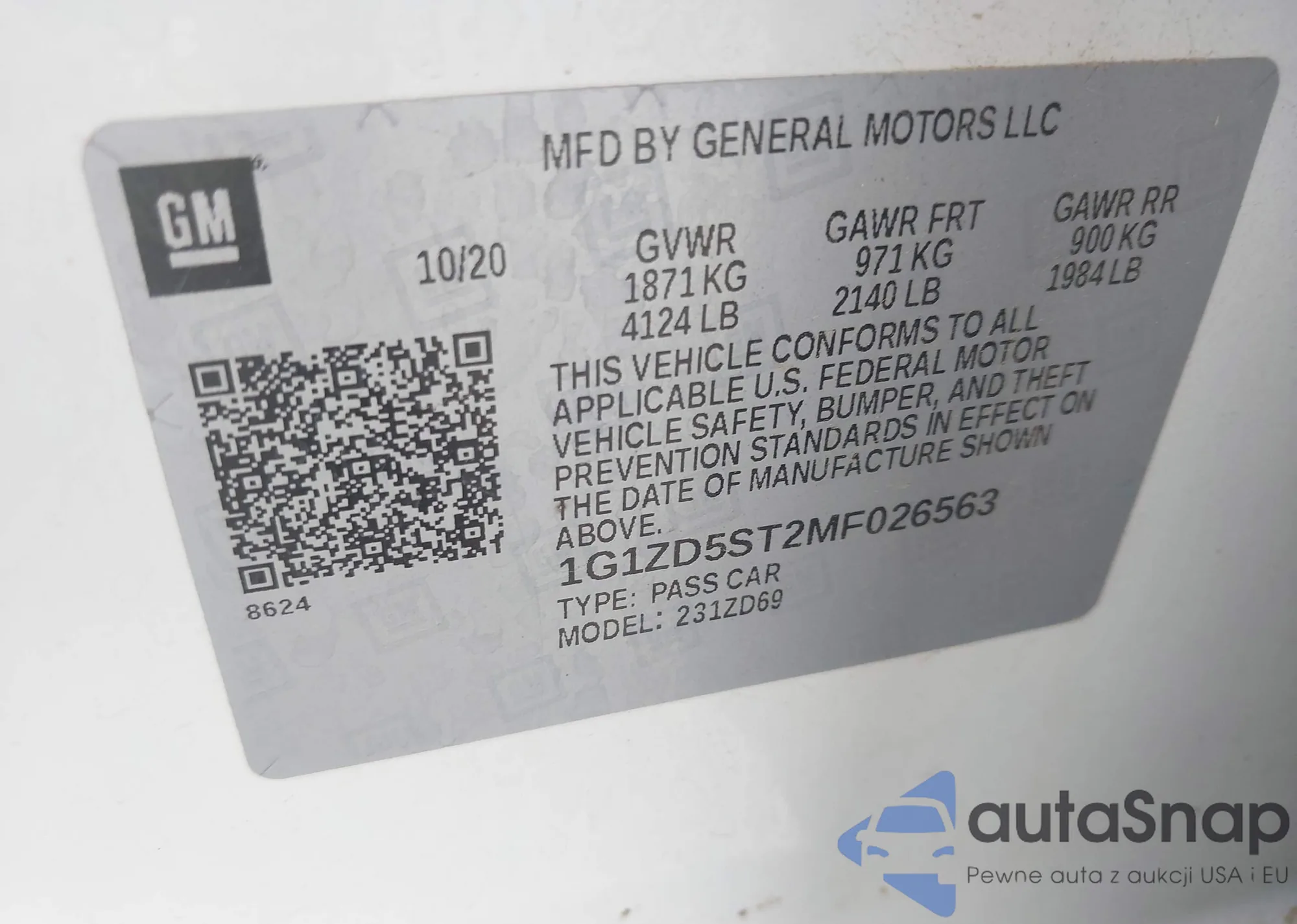 LOT: 44087389 VIN: 2G1WT57K491135336