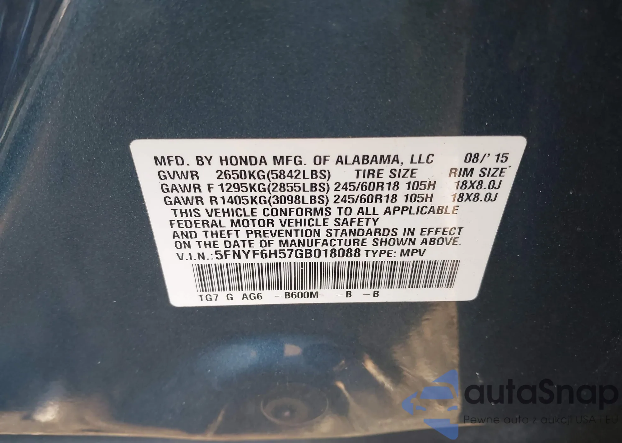 • VIN 5FNYF6H57GB018088