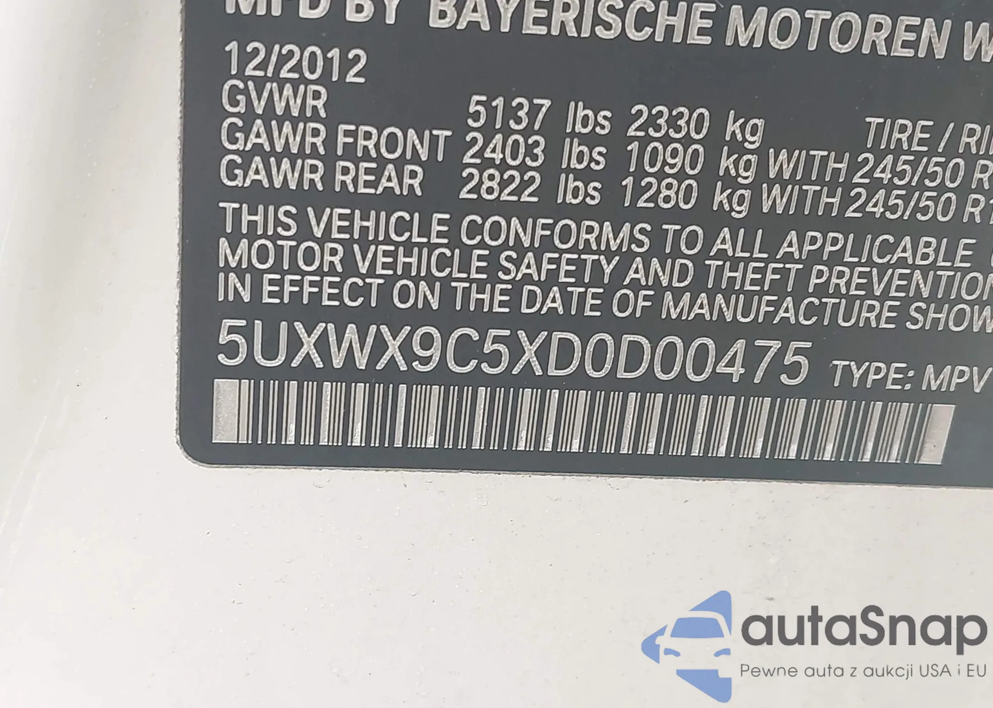 LOT: 43924393 VIN: WMWXM7C5XET986806