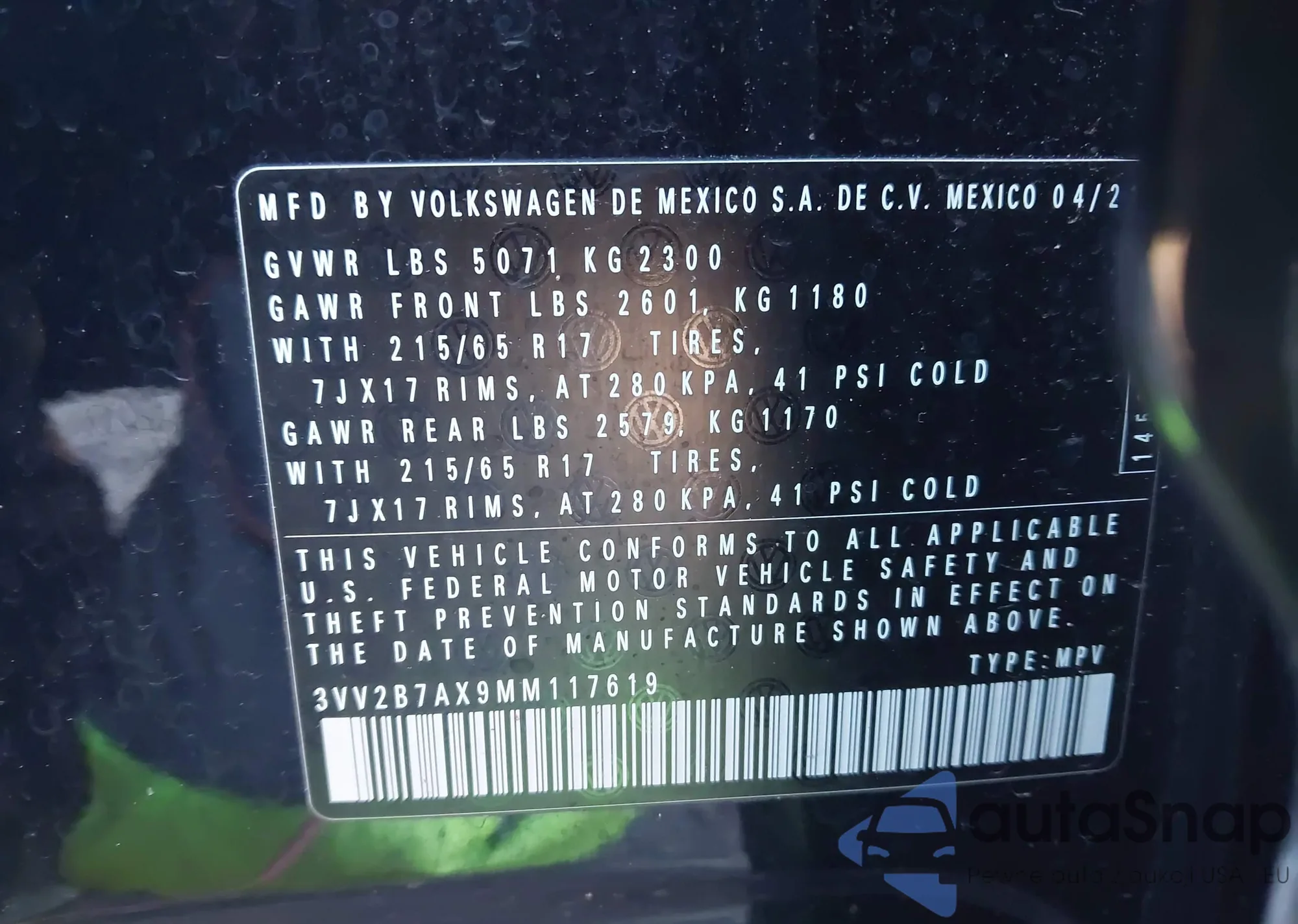 LOT: 44060448 VIN: 1VWMA7A36LC024111