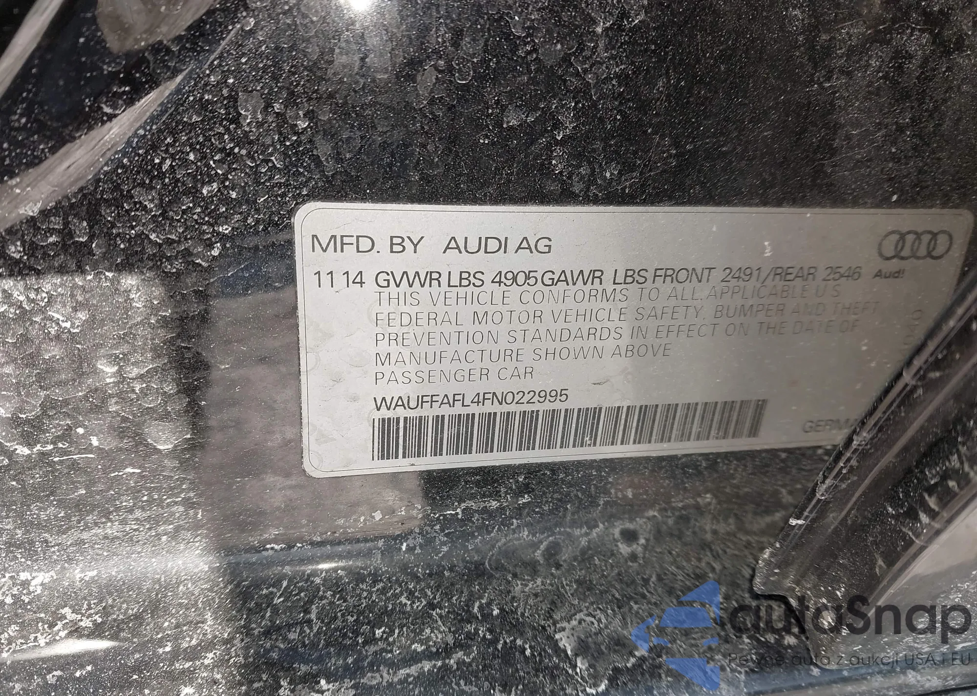 LOT: 43813841 VIN: WAUFGAFC8GN092854