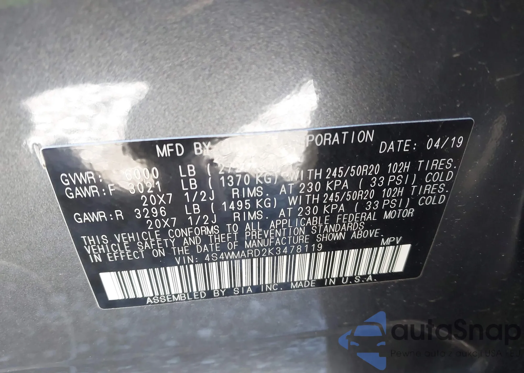 • VIN 3KPFK4A71JE245700