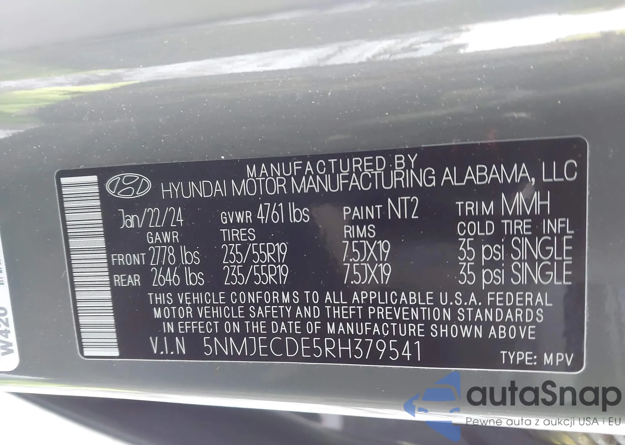 • VIN 5NMJECDE5RH379541