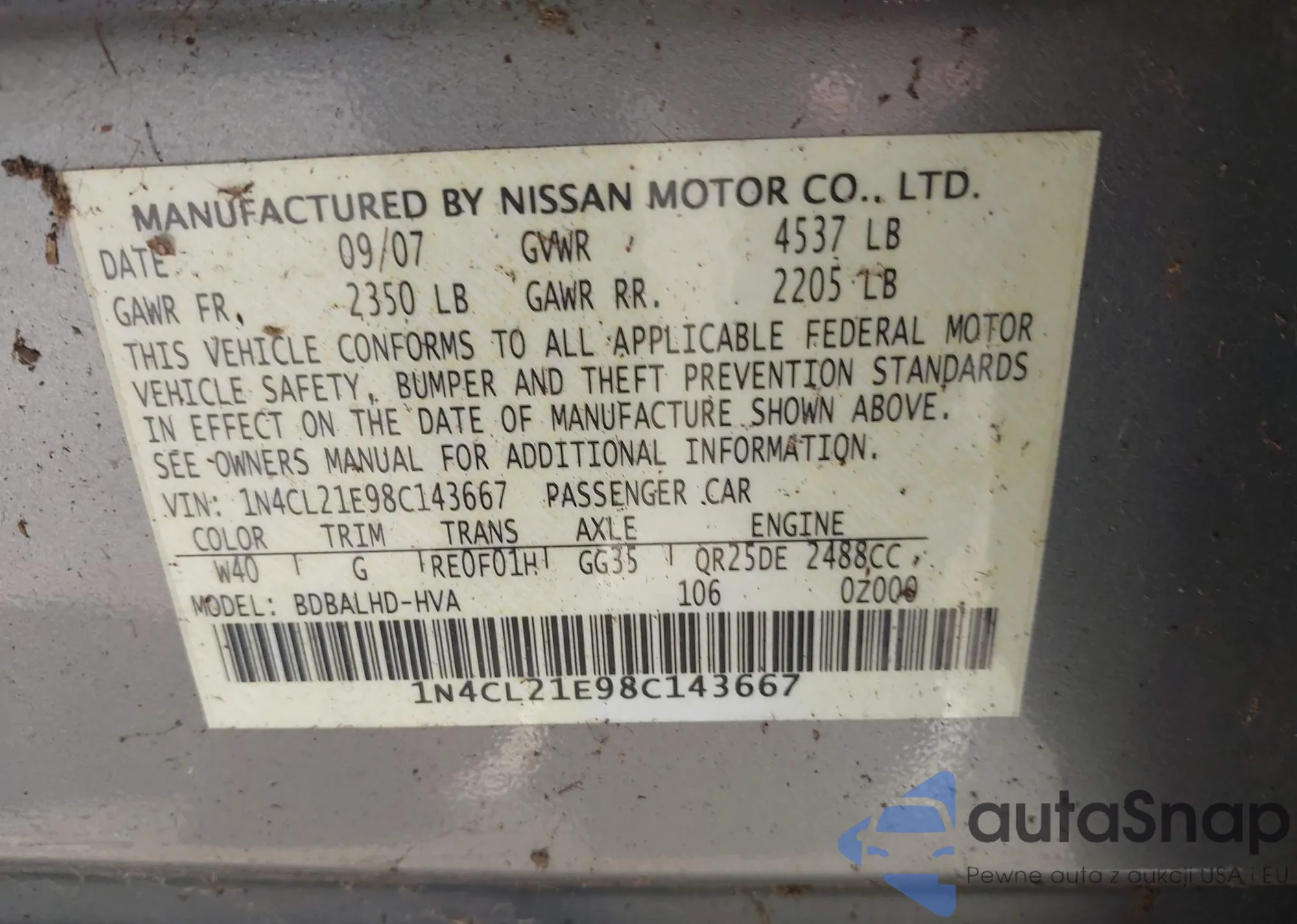 LOT: 44119833 VIN: 1N4CL21E98C143667