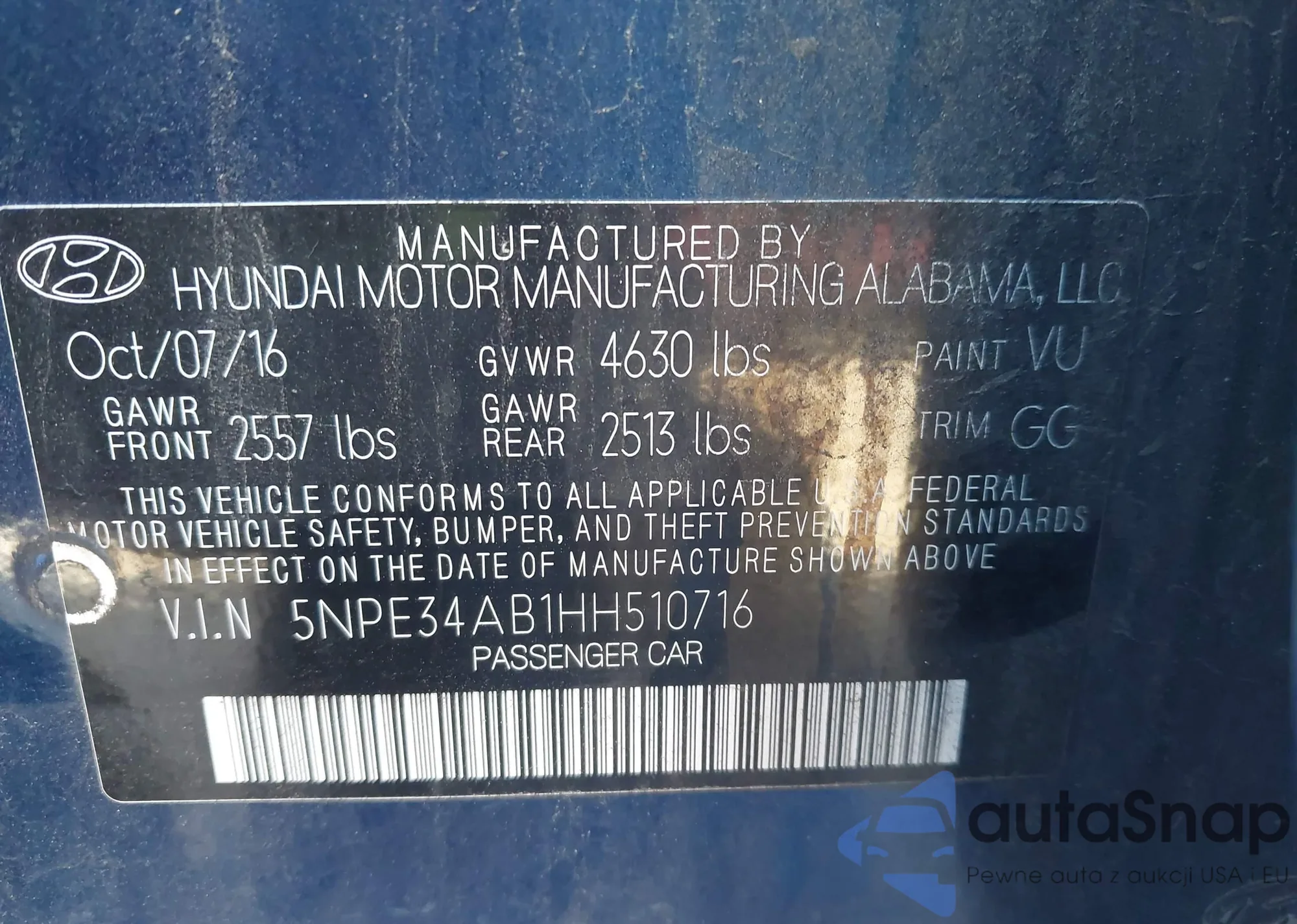 • VIN 5NPE34AB1HH510716
