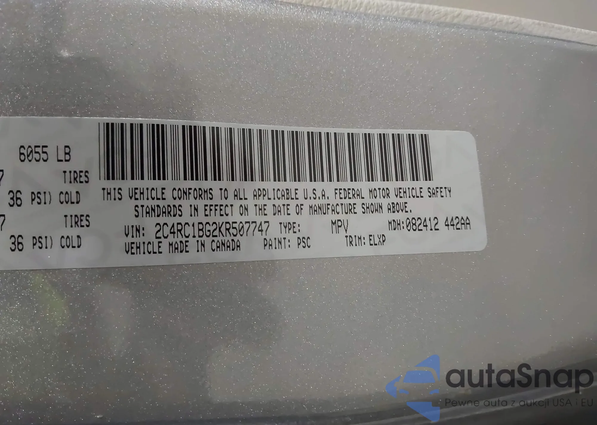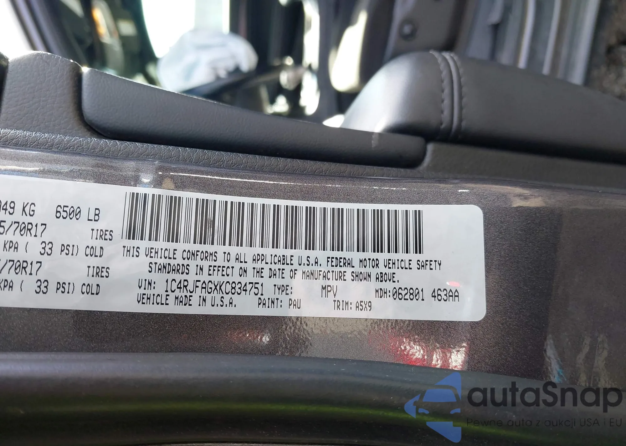 • VIN 1C4RJFAGXKC834751