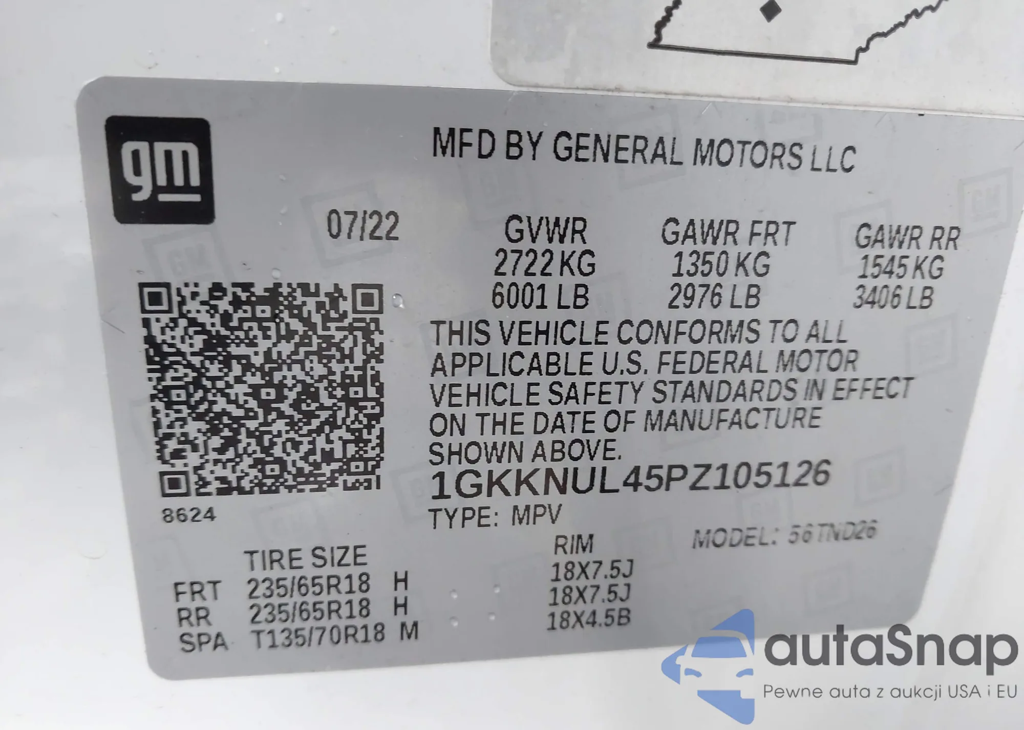 LOT: 43545391 VIN: 1GKKNUL45PZ105126