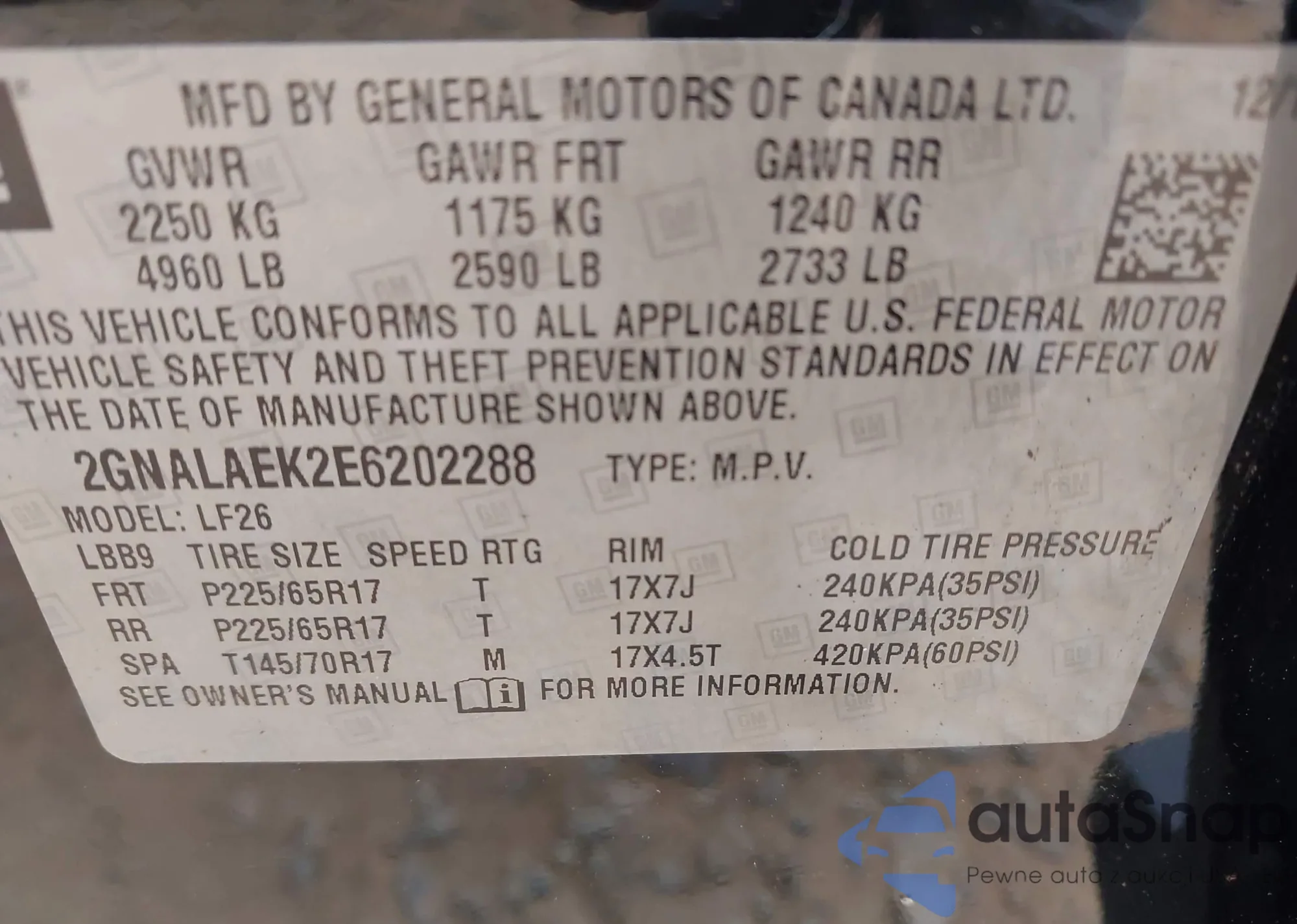 • VIN 2GNALAEK2E6202288