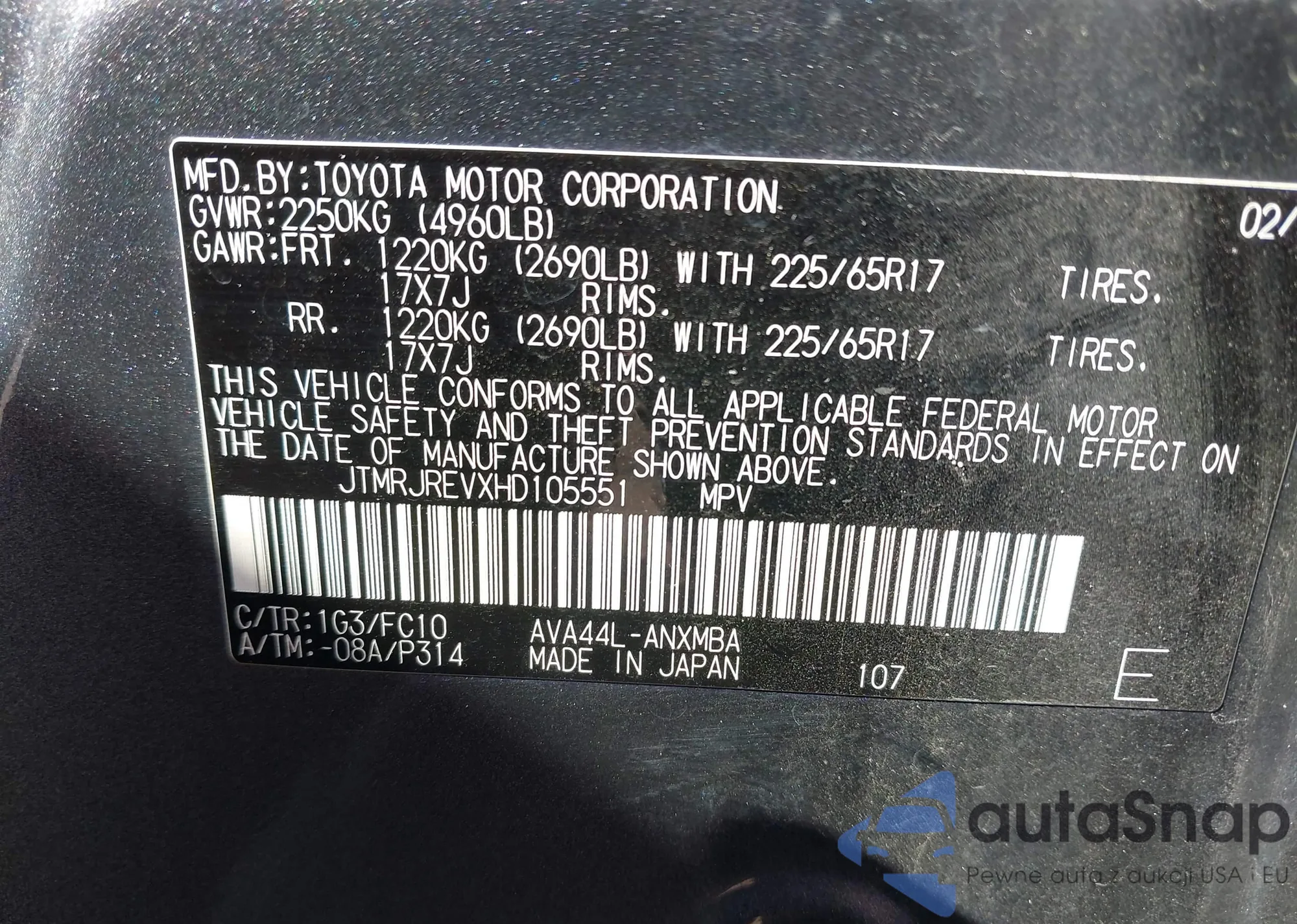 LOT: 43717702 VIN: JTMBFREV4JJ179266