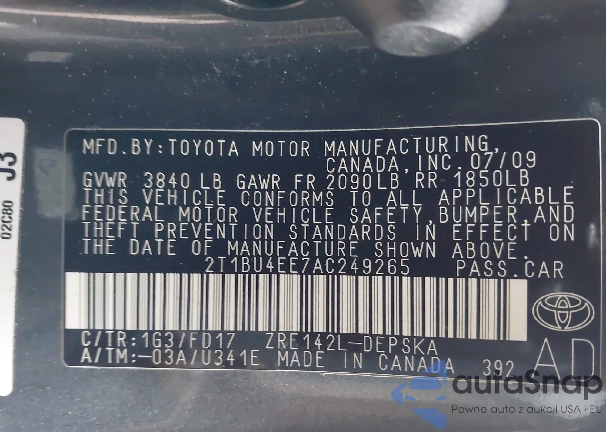• VIN 5TDKK3DC1BS006205