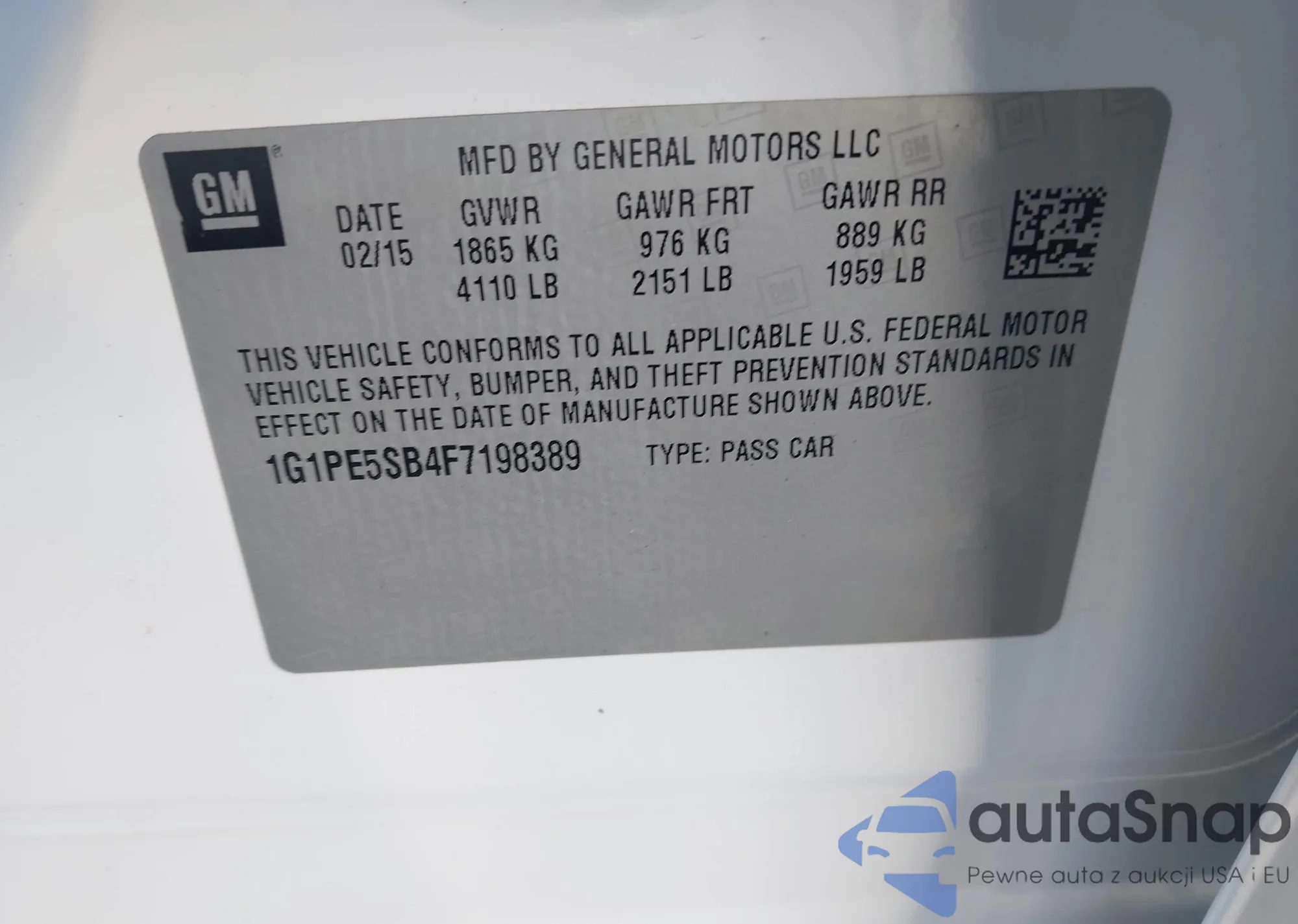 LOT: 43842839 VIN: 1G1PE5SB4F7198389