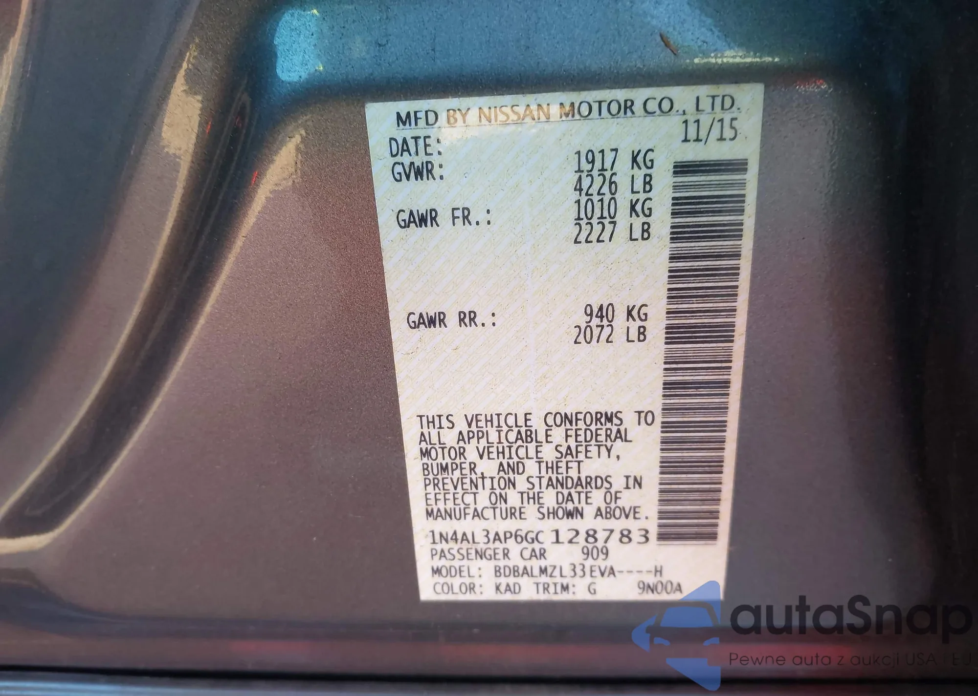 • VIN 1N4AL3AP6GC128783