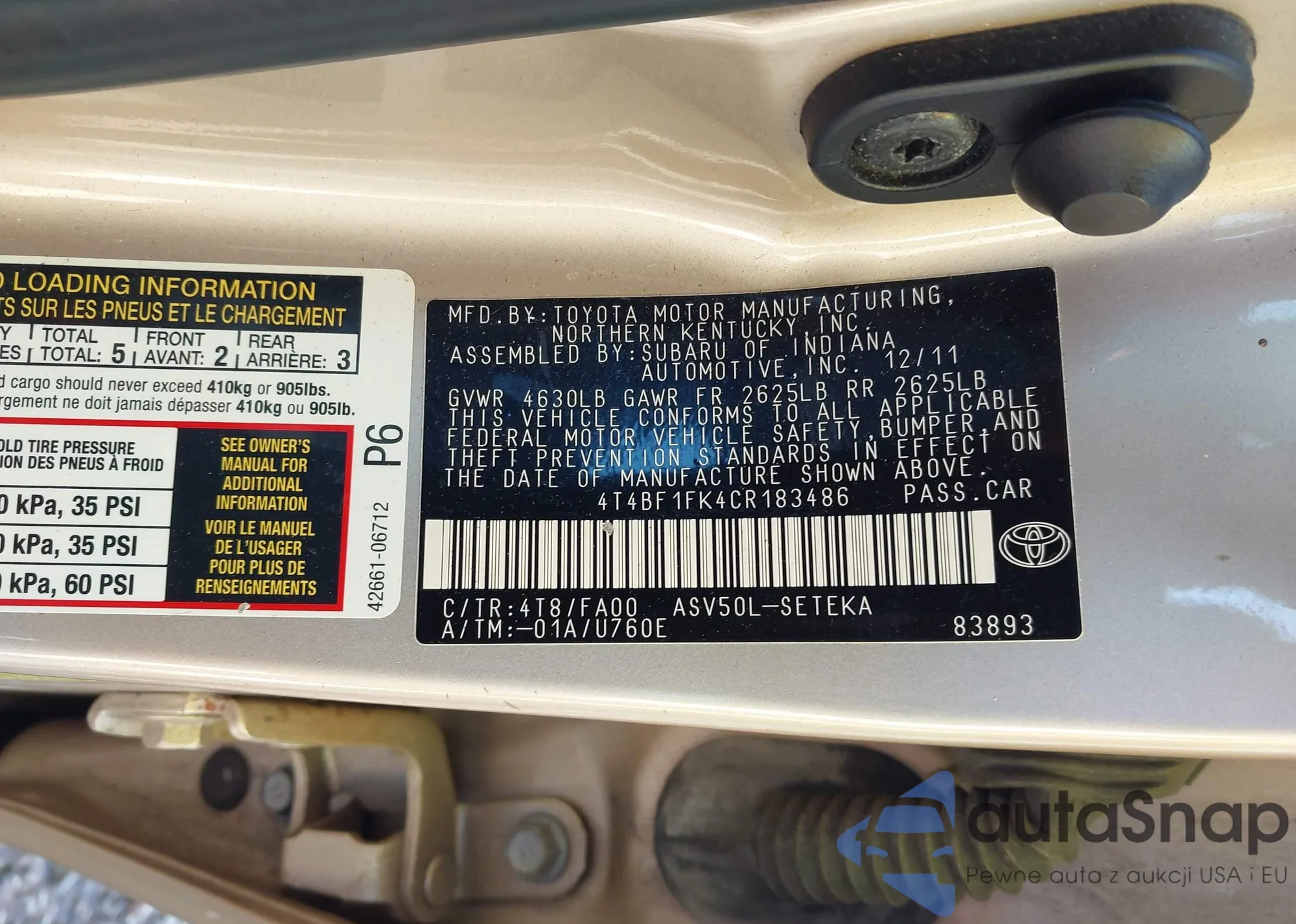 • VIN 4T4BF1FK4CR183486