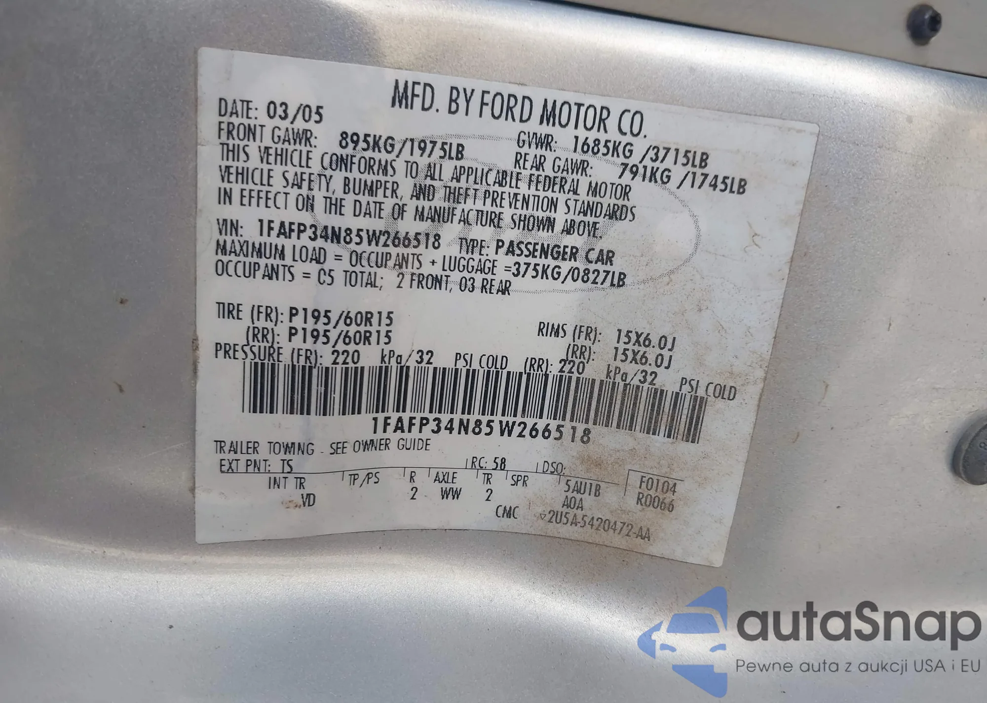• VIN 19UUA8F57AA008688