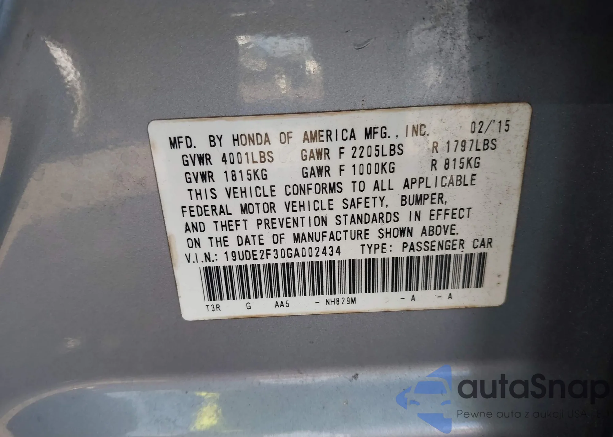 • VIN 19UDE2F30GA002434