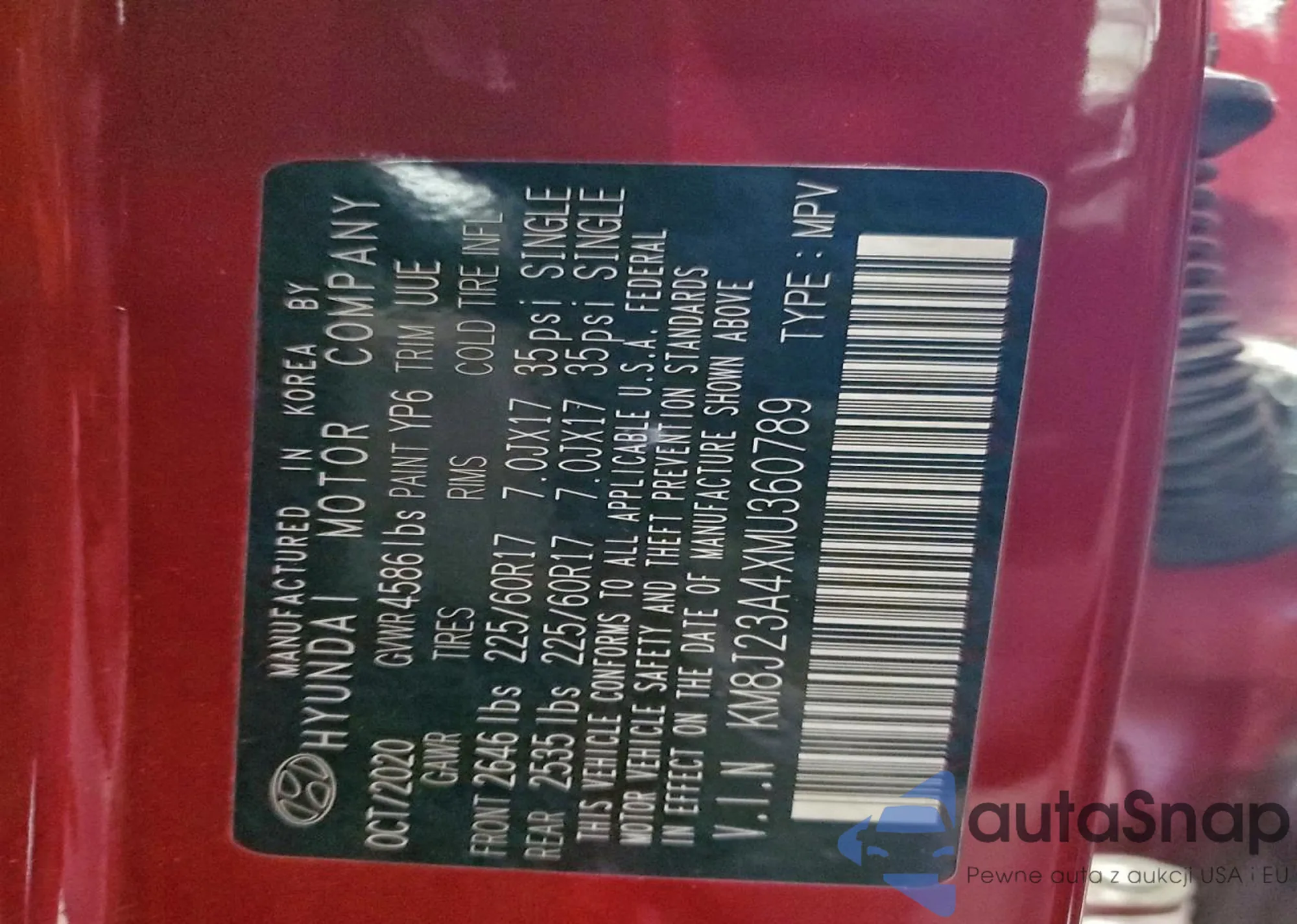 • VIN KM8J23A4XMU360789