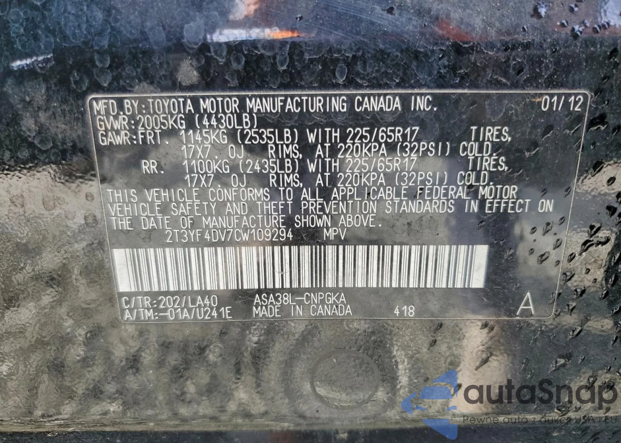 • VIN 5TEMU4FNXAZ682967
