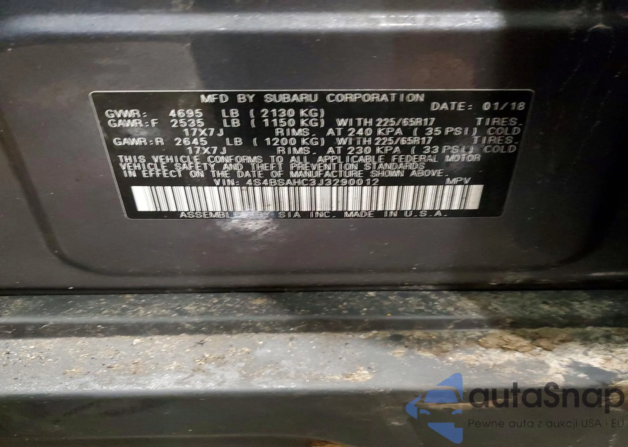 • VIN 4S4BSAHC3J3290012