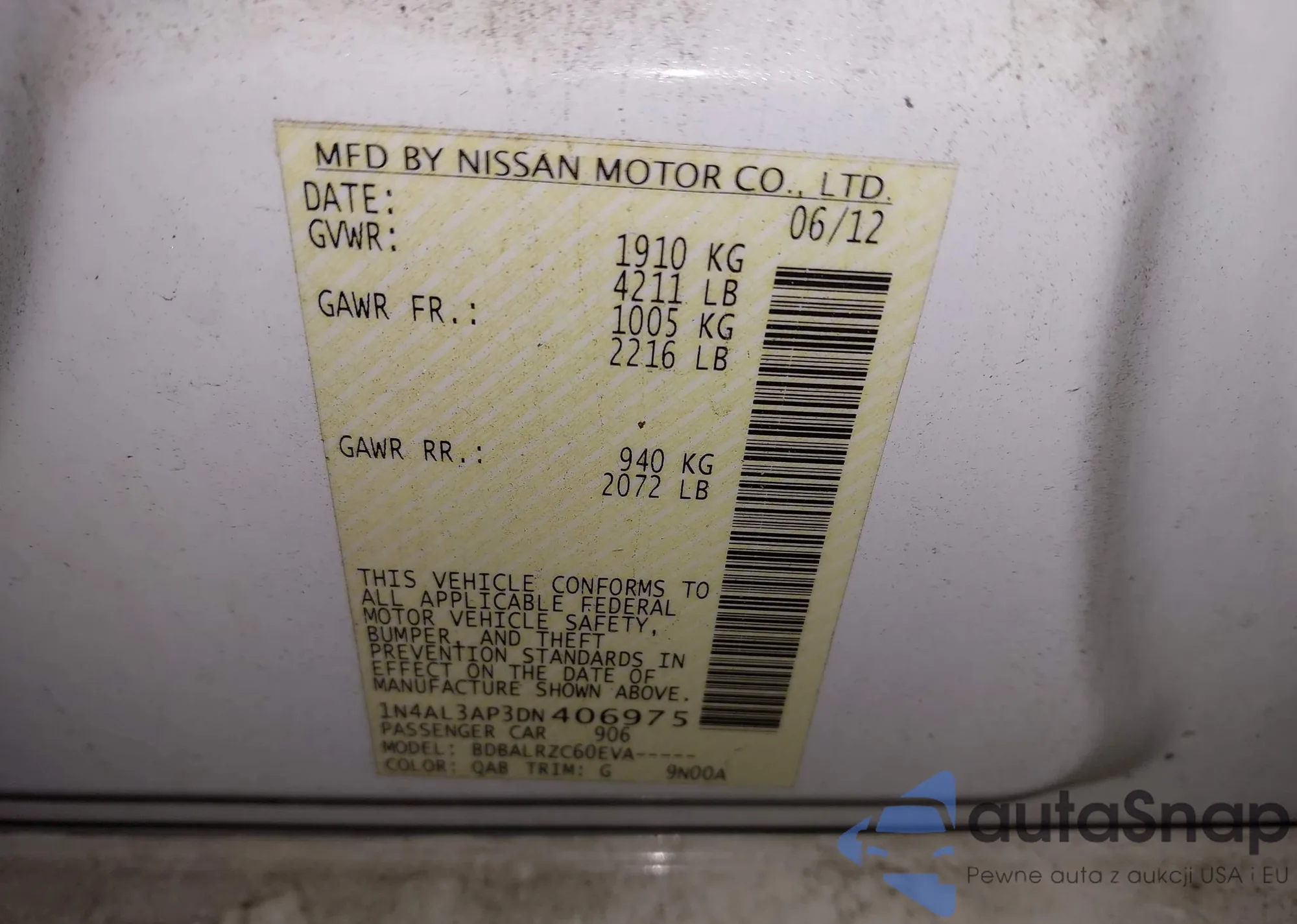 LOT: 43894612 VIN: 1N4AL3AP3DN406975