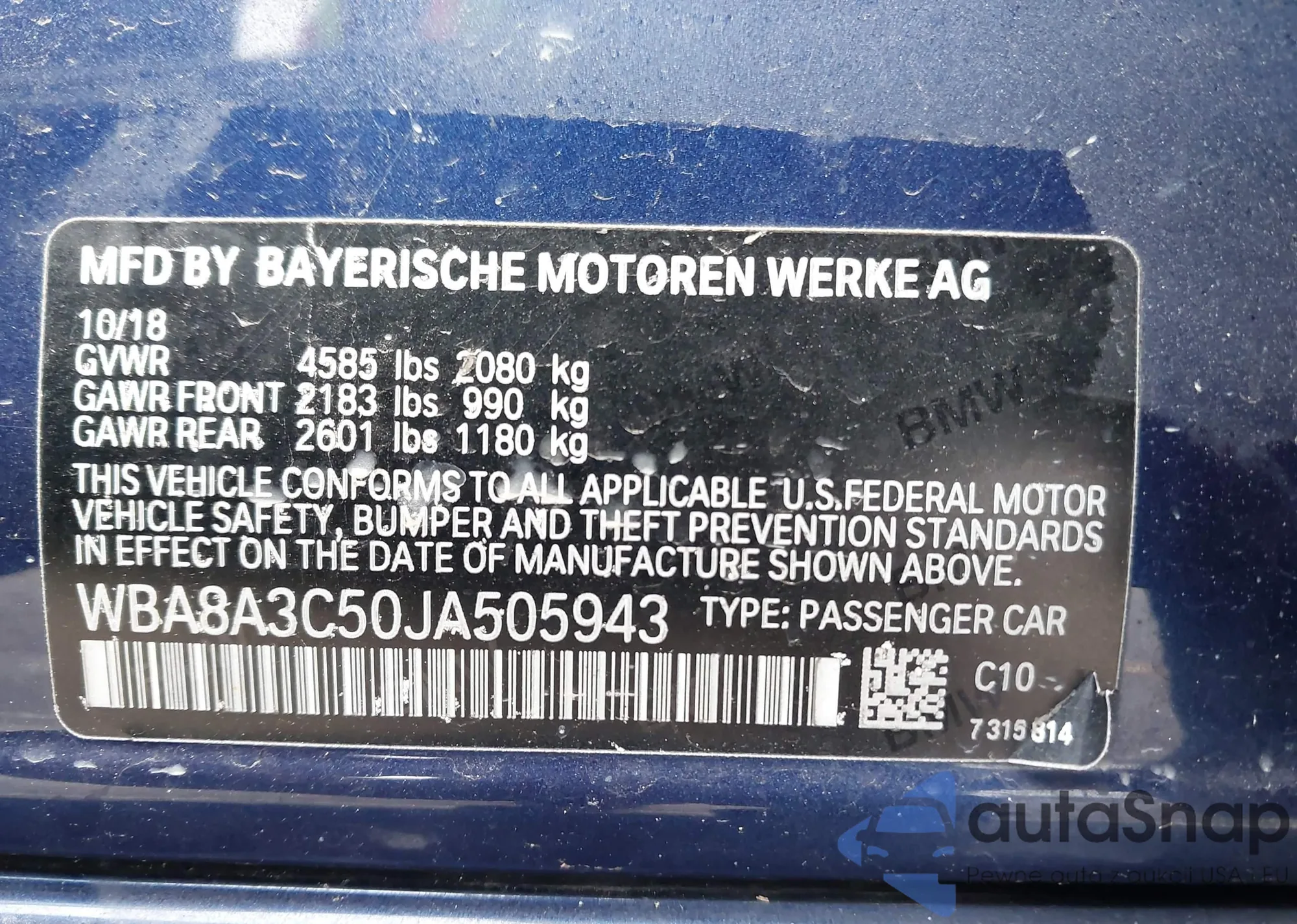 • VIN WBA8A3C50JA505943