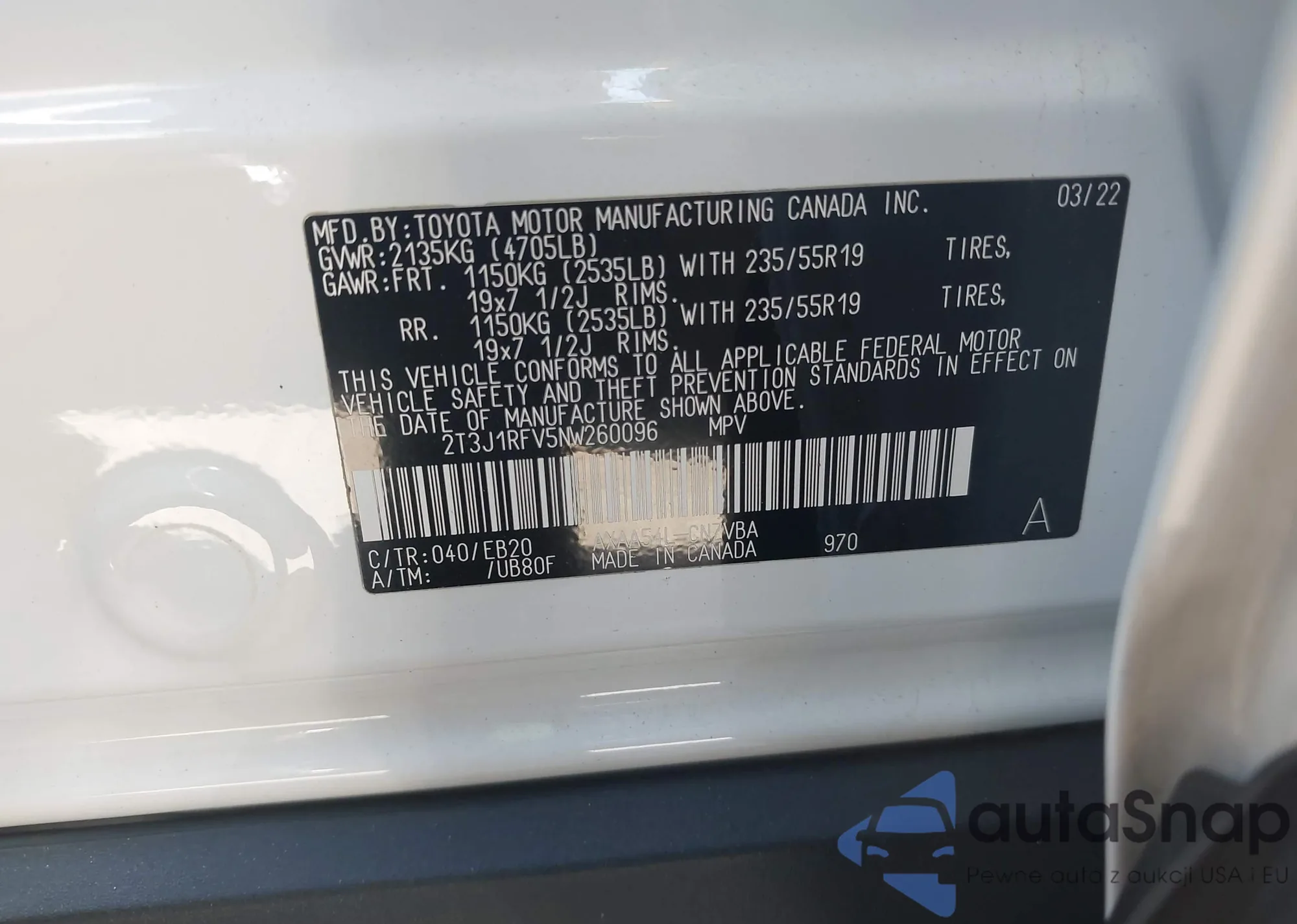 LOT: 43742776 VIN: 4T1KZ1AK7NU069171