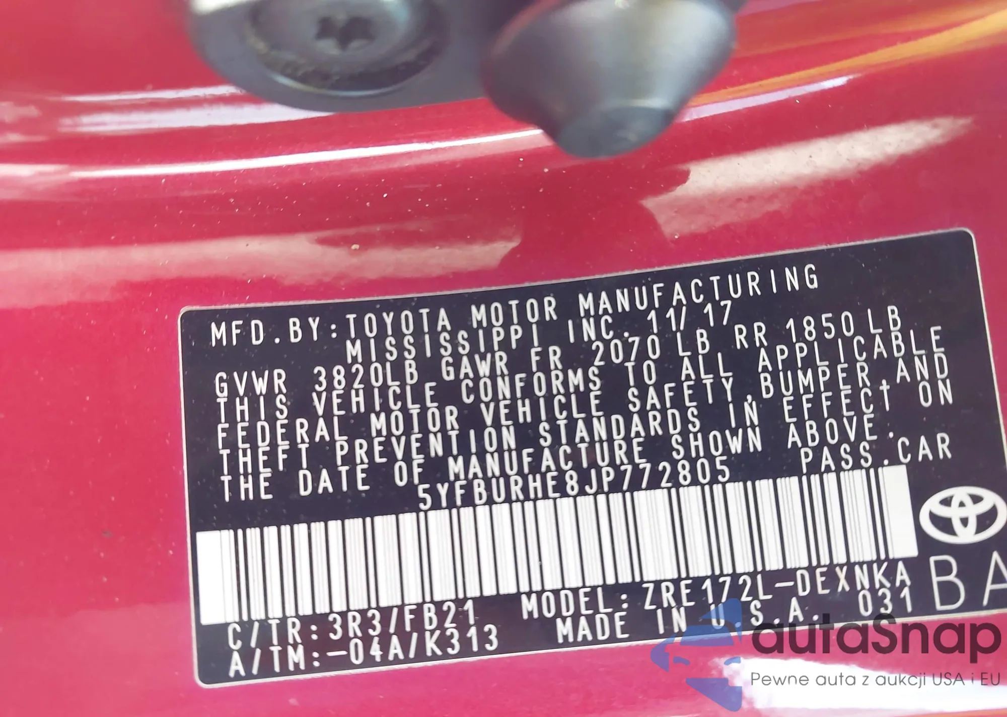 • VIN 5YFBURHE8JP772805
