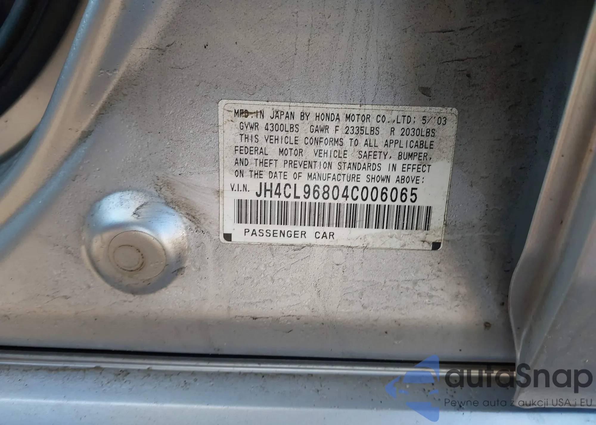 LOT: 44008394 VIN: JH4CL96804C006065