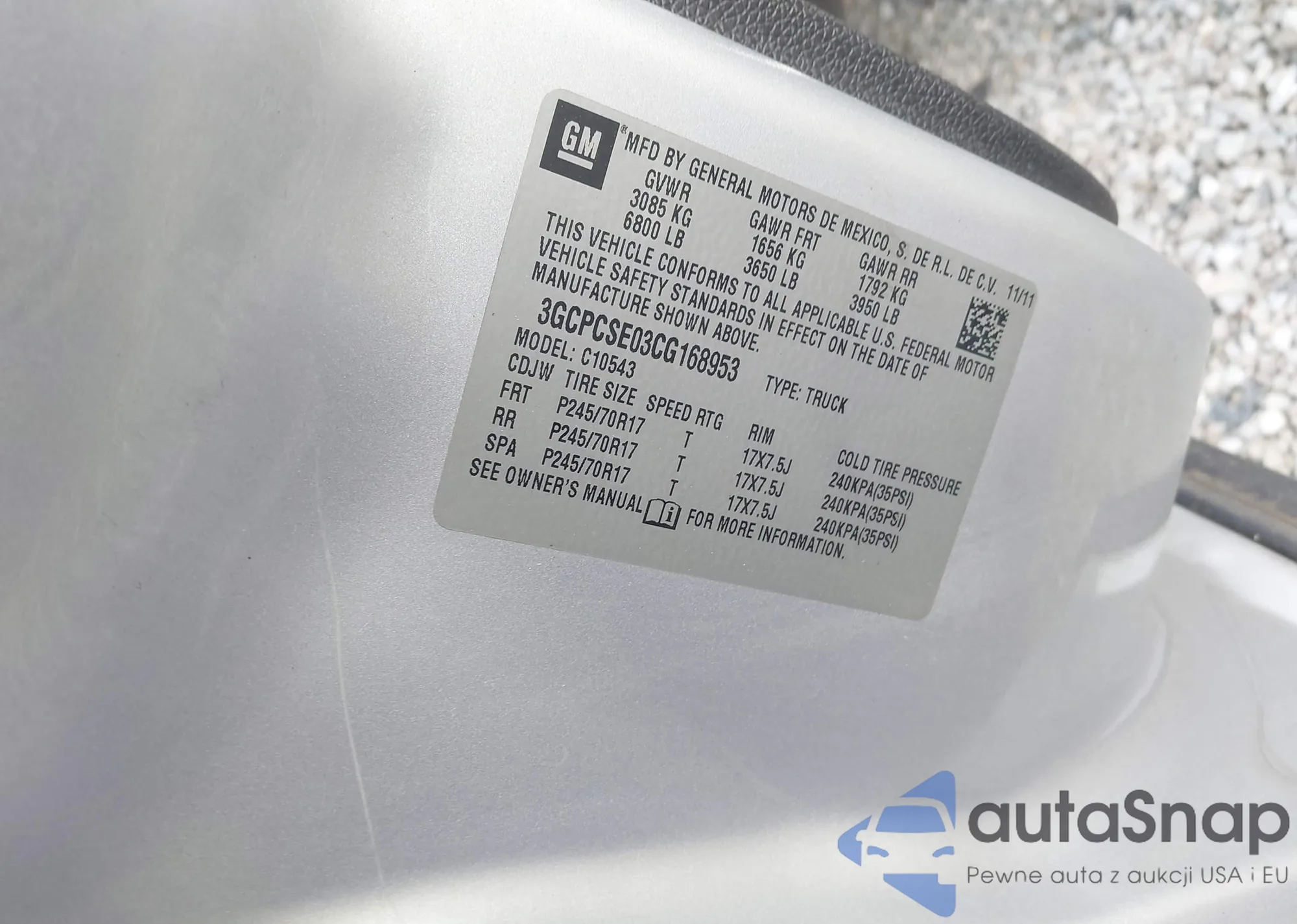 LOT: 44011450 VIN: 3GCPCSE03CG168953