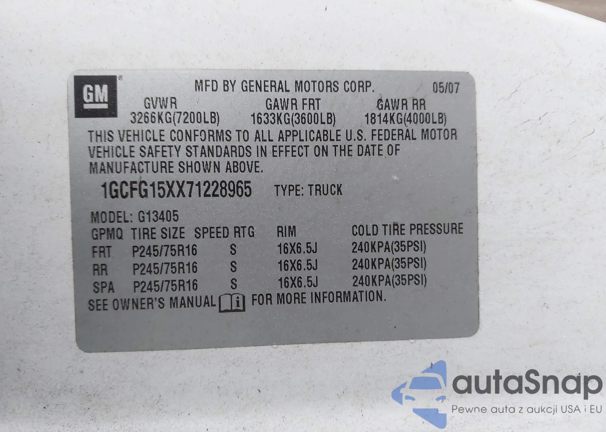 • VIN 1GCFG15XX71228965