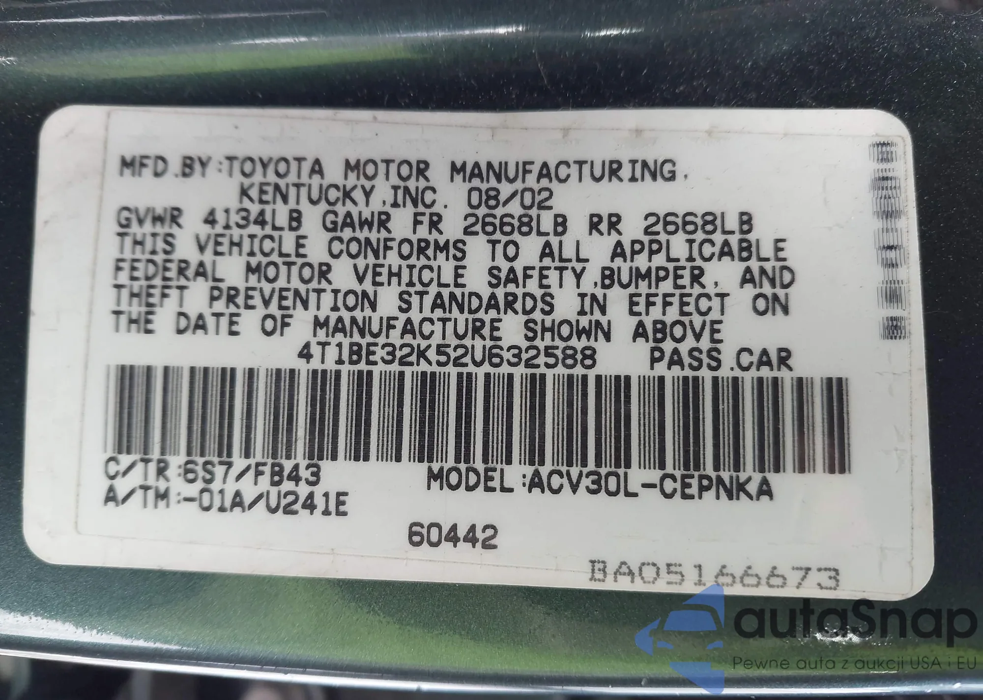• VIN 4T1BE32K52U632588