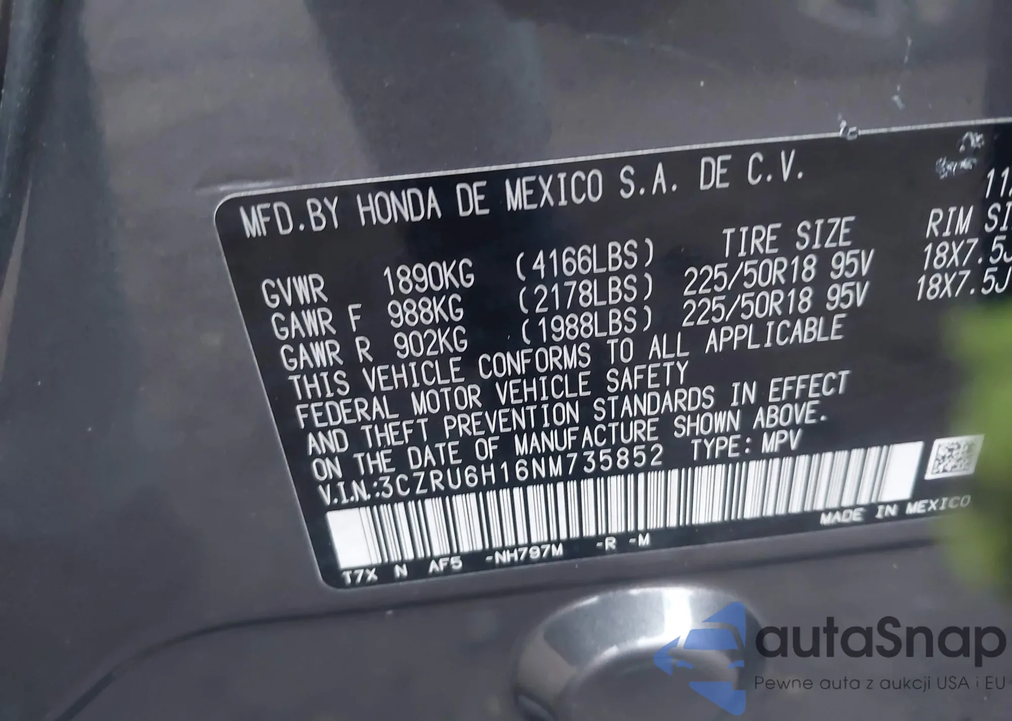 • VIN 2HKRS4H71RH433952