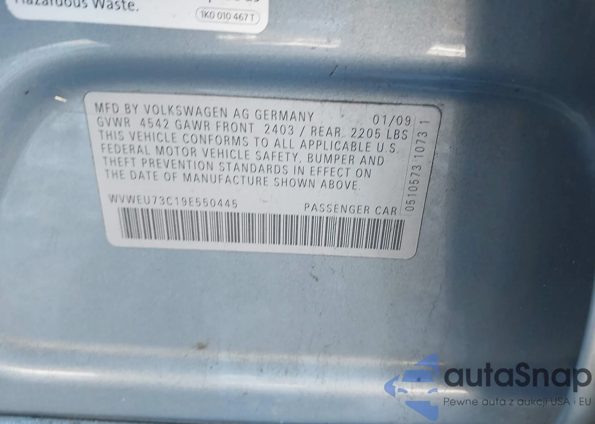 • VIN 1HGCP2F36CA207899