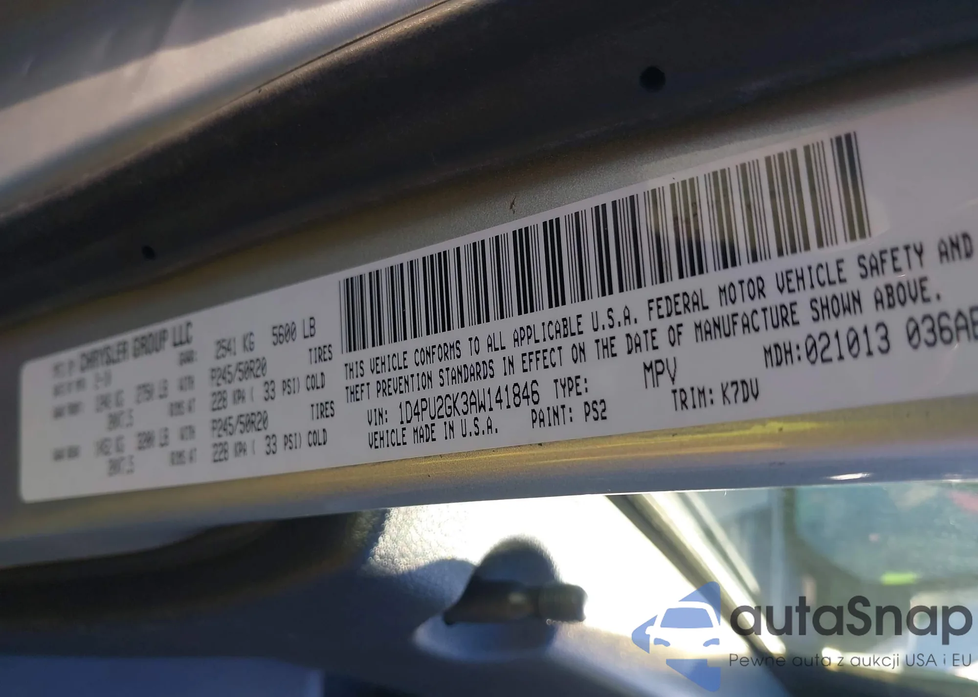 • VIN 1D4PU2GK3AW141846