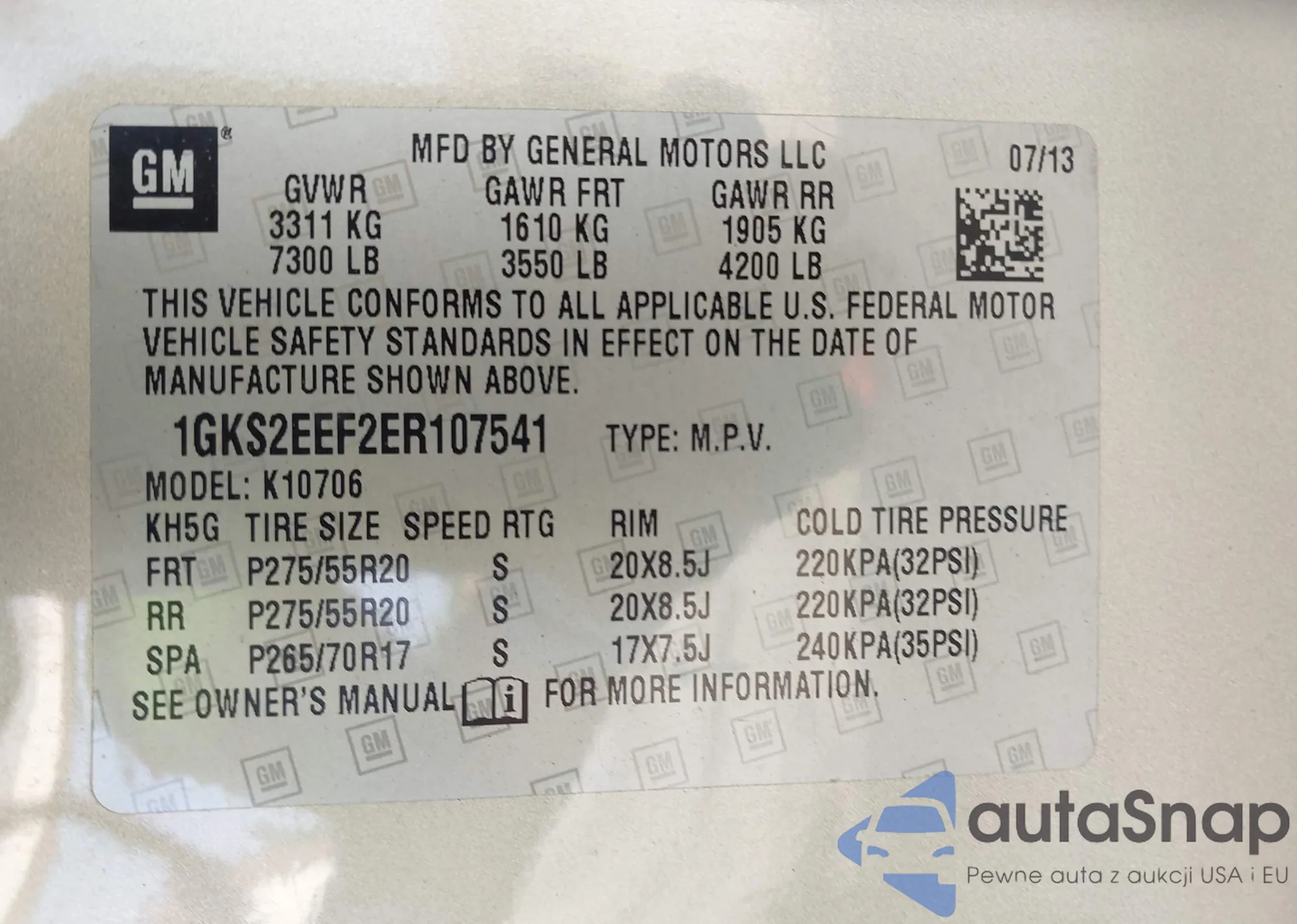 • VIN 1GKS2EEF2ER107541