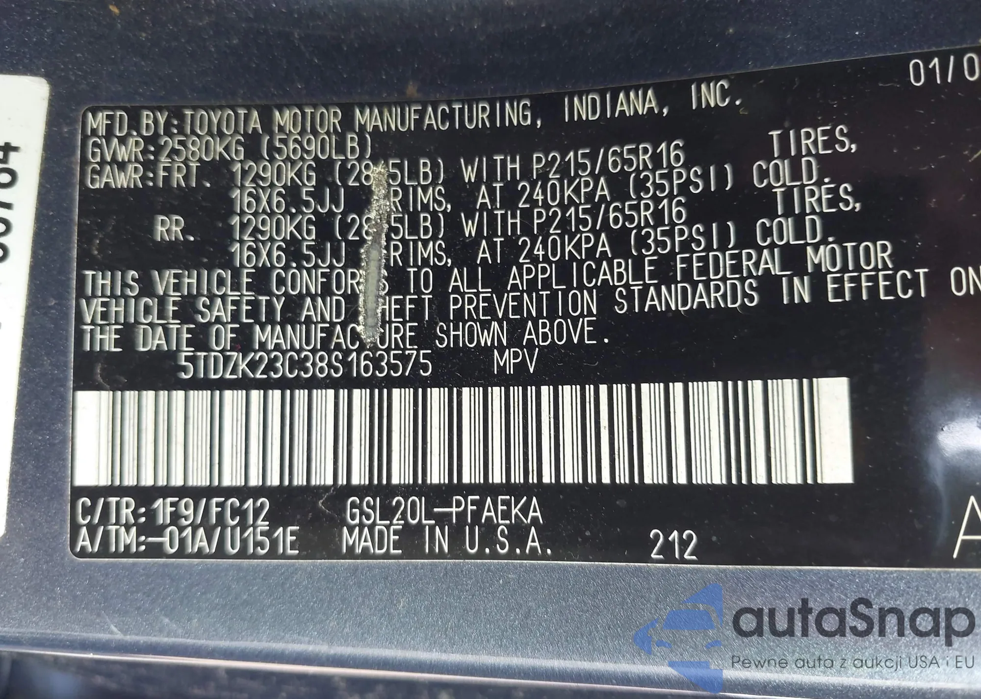 • VIN 4T1BF3EKXAU110319