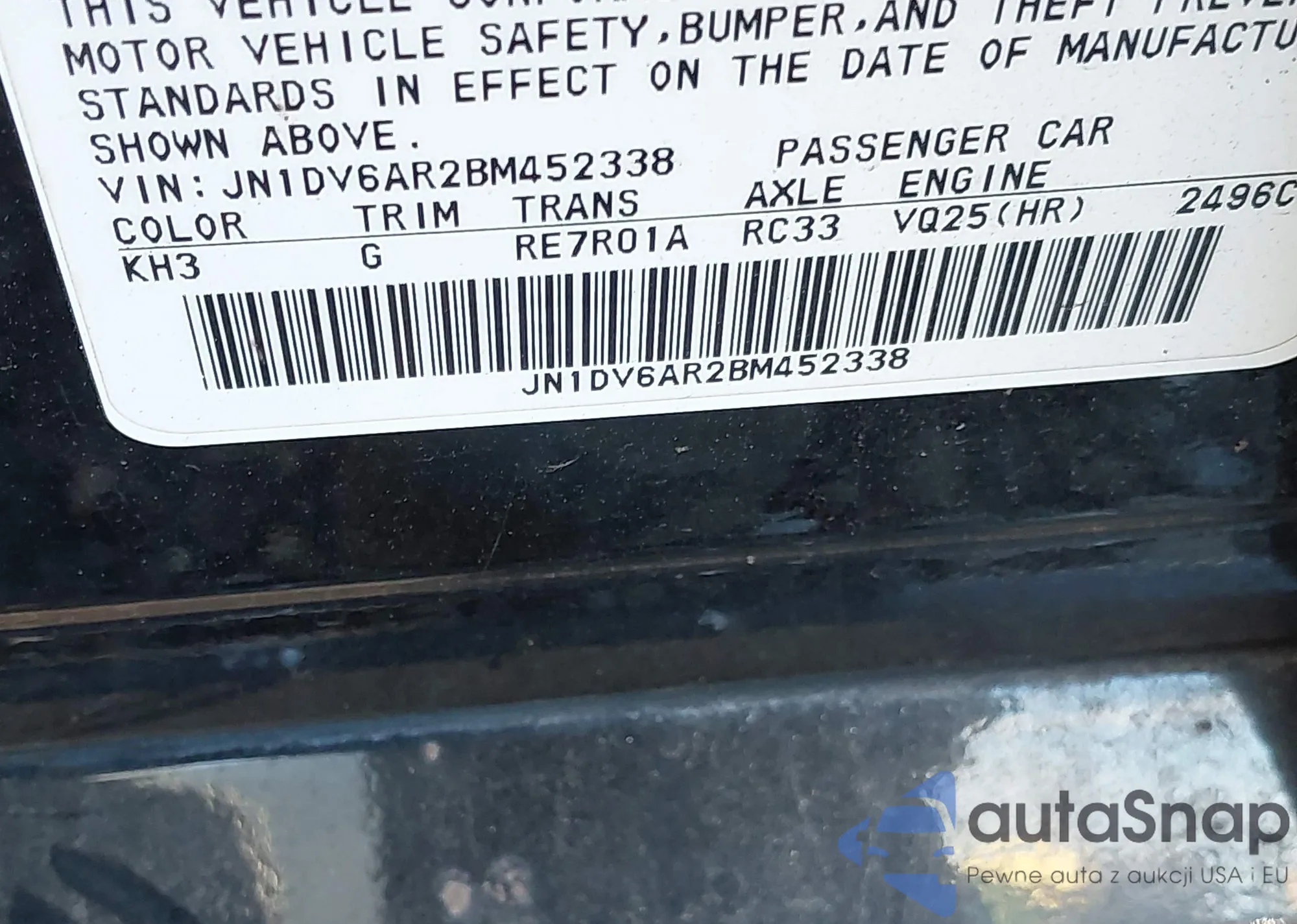 2011 Infiniti G25X из США, поврежденный, VIN JN1DV6AR2BM452338