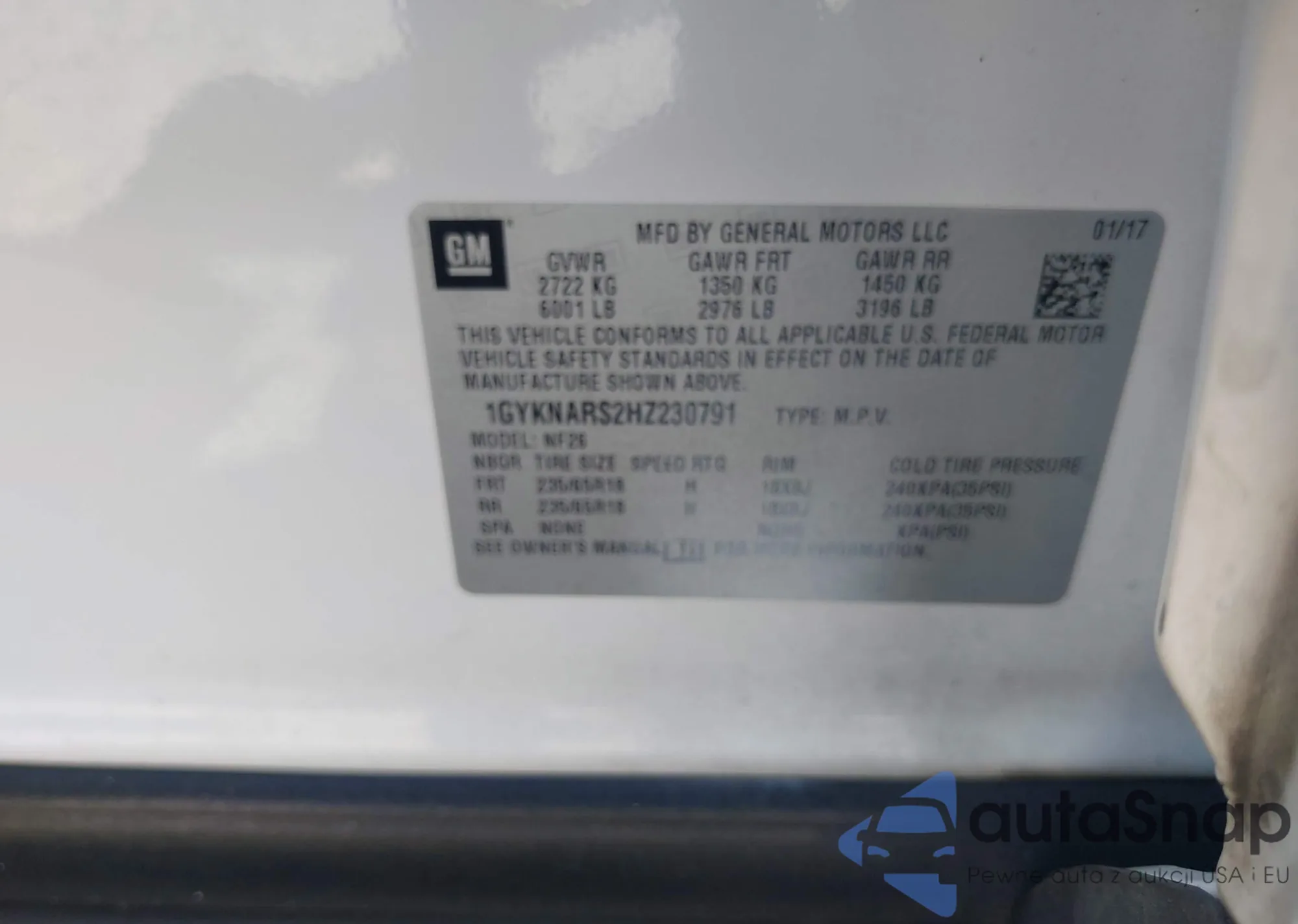 • VIN 1GYKNARS2HZ230791