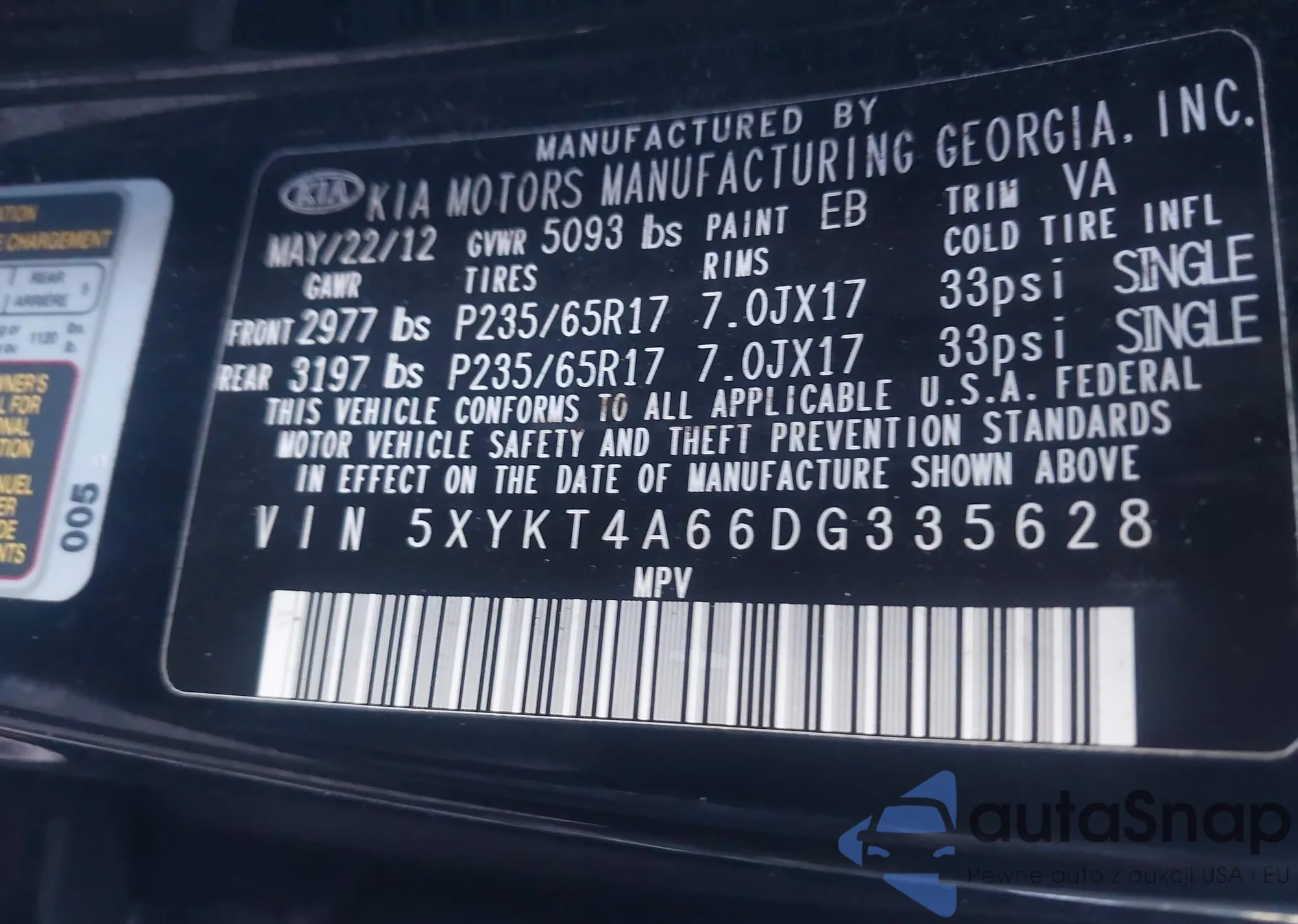 • VIN 5XYKT4A66DG335628