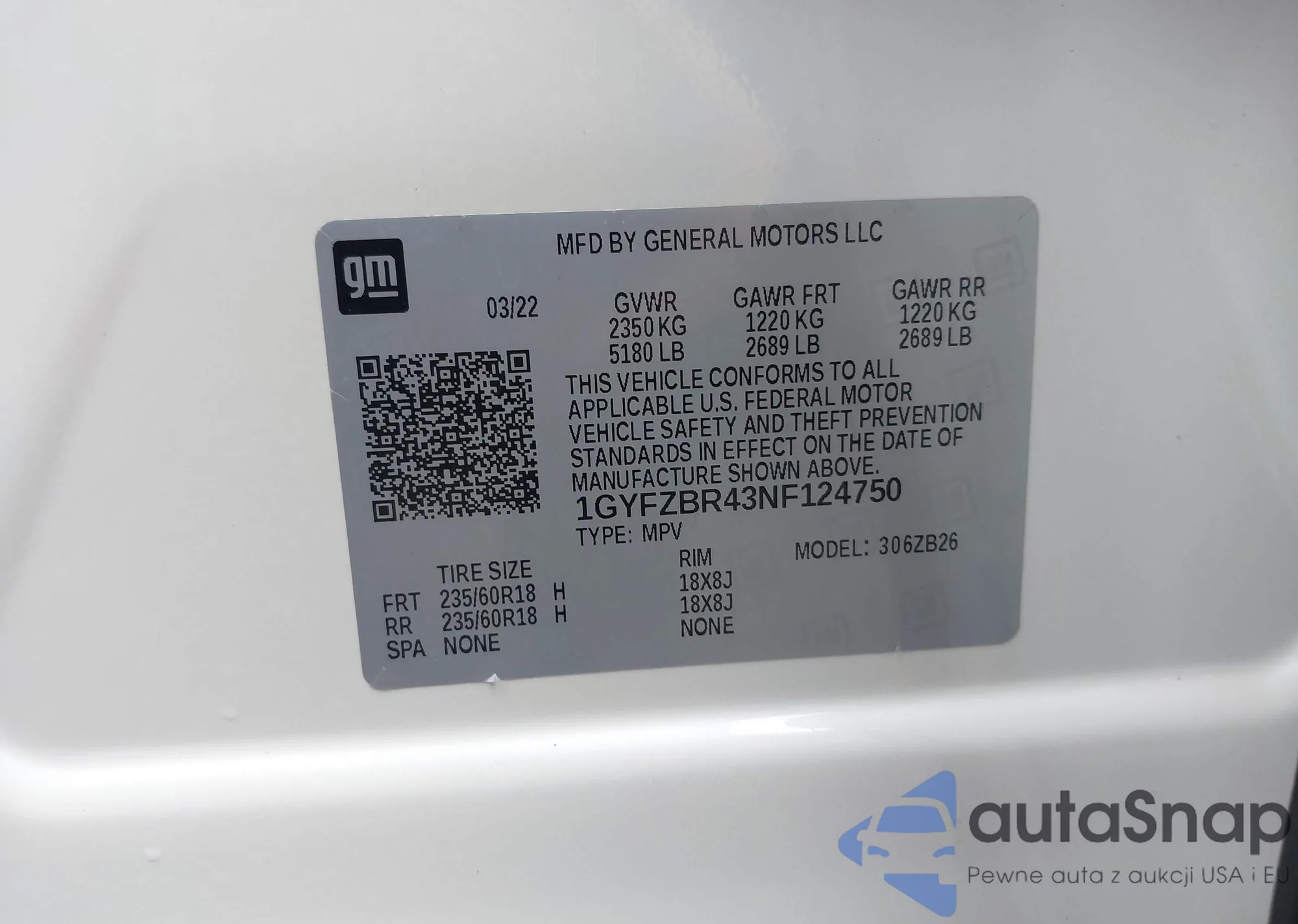 • VIN 1GYFZBR43NF124750