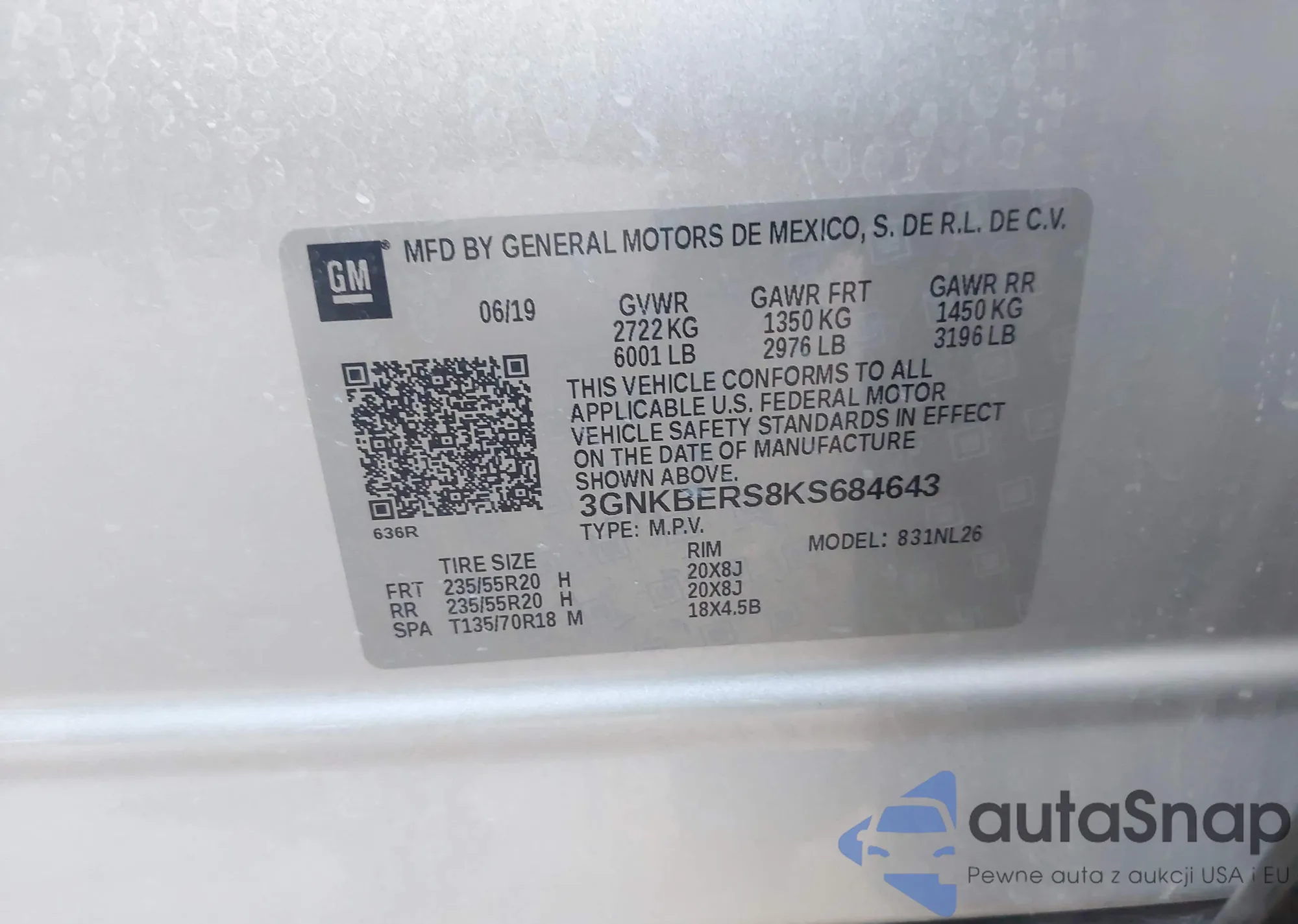 LOT: 43213456 VIN: 1GYKNARS2HZ230791