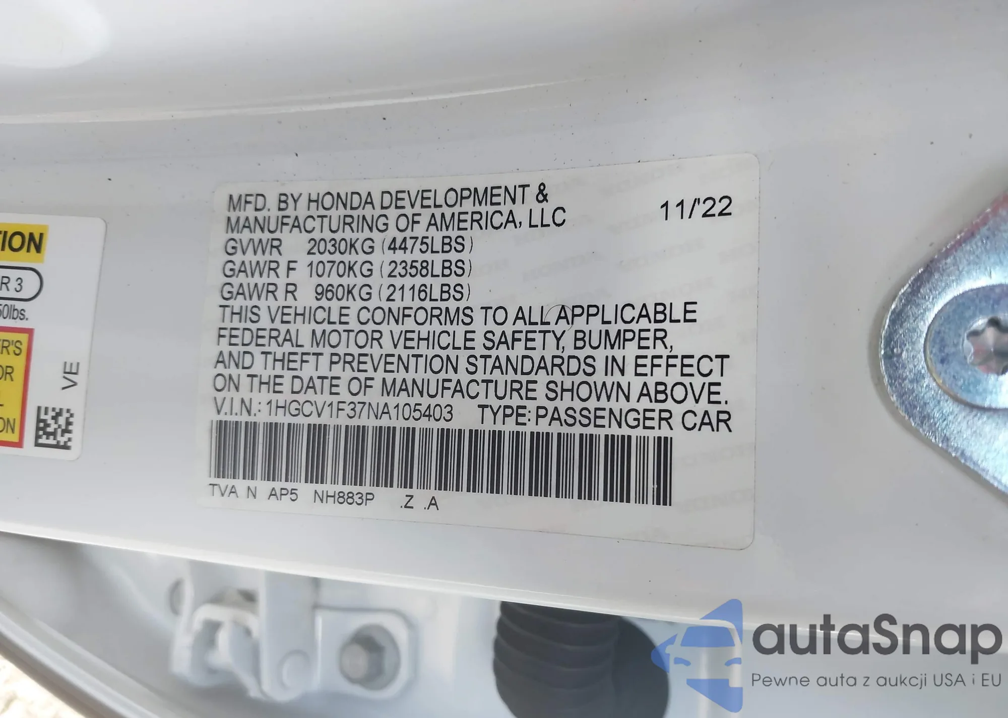 • VIN 1HGCV1F37NA105403