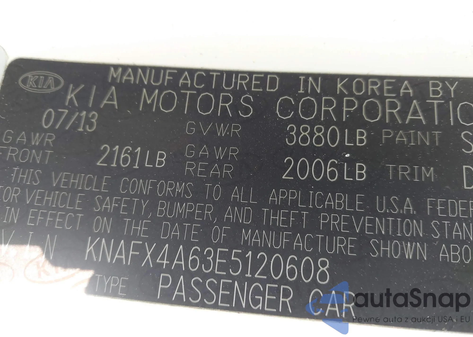 • VIN KNAFX4A63E5120608