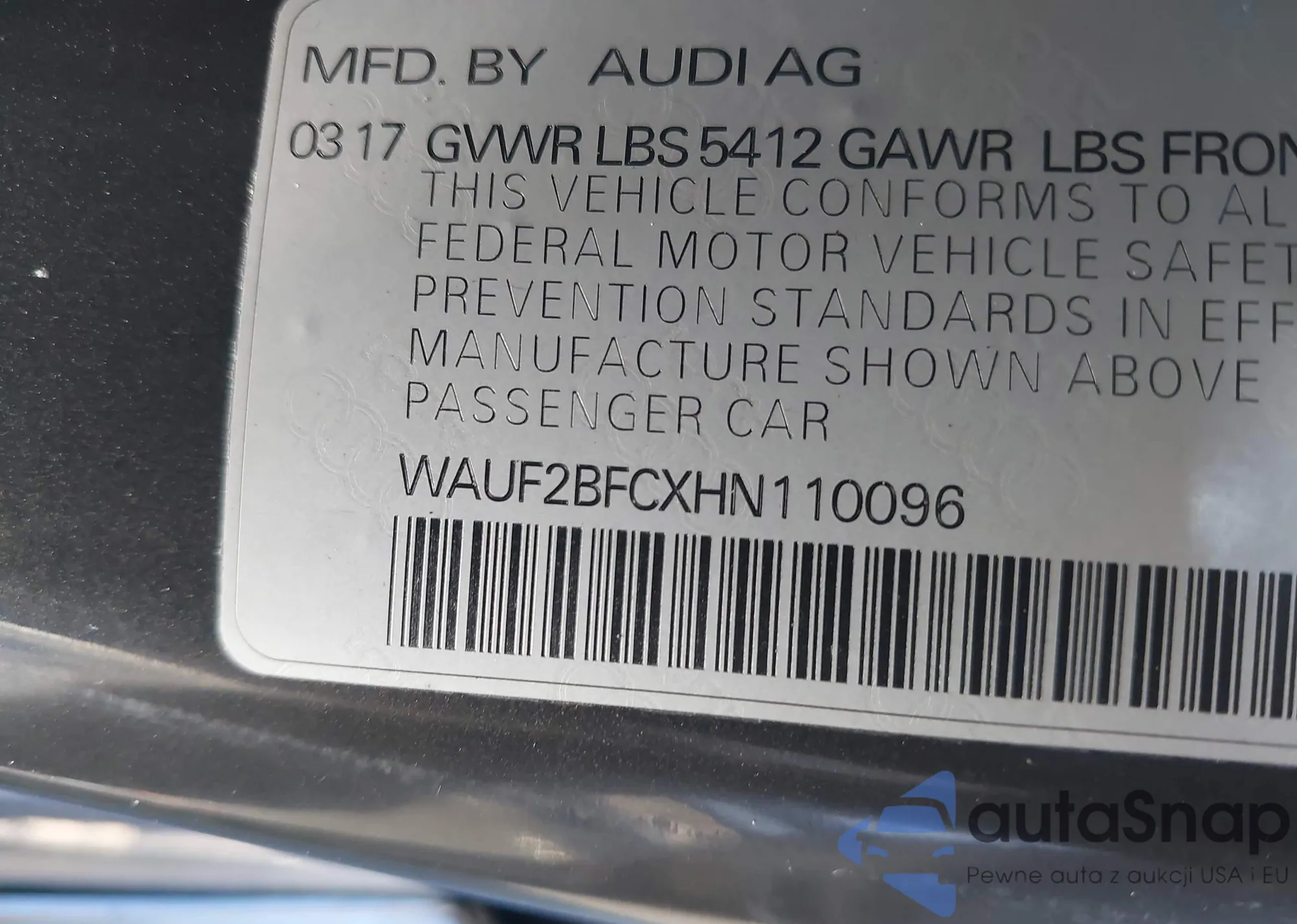 • VIN WAUF2BFCXHN110096