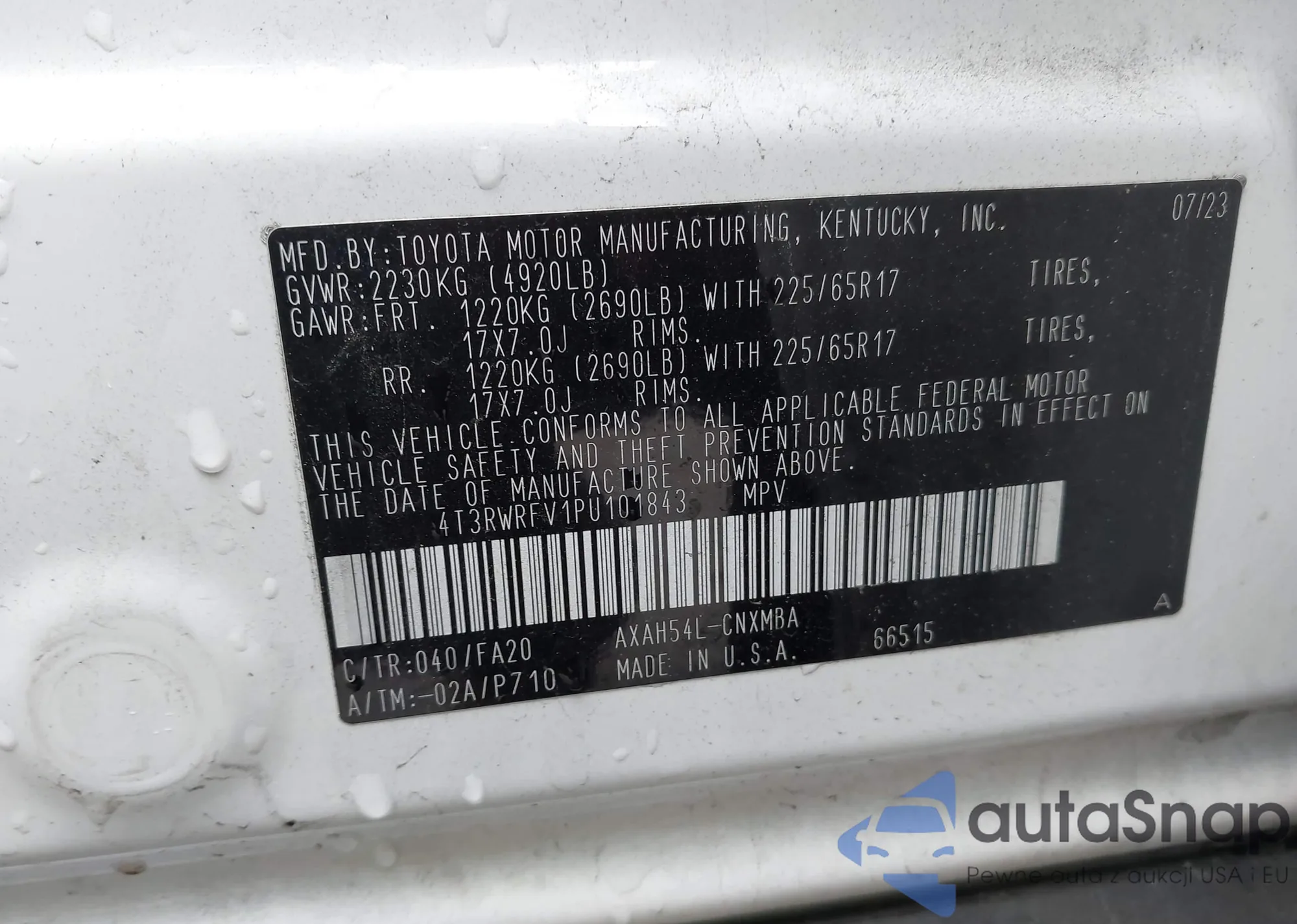 LOT: 43738113 VIN: 4T3RWRFV1PU101843