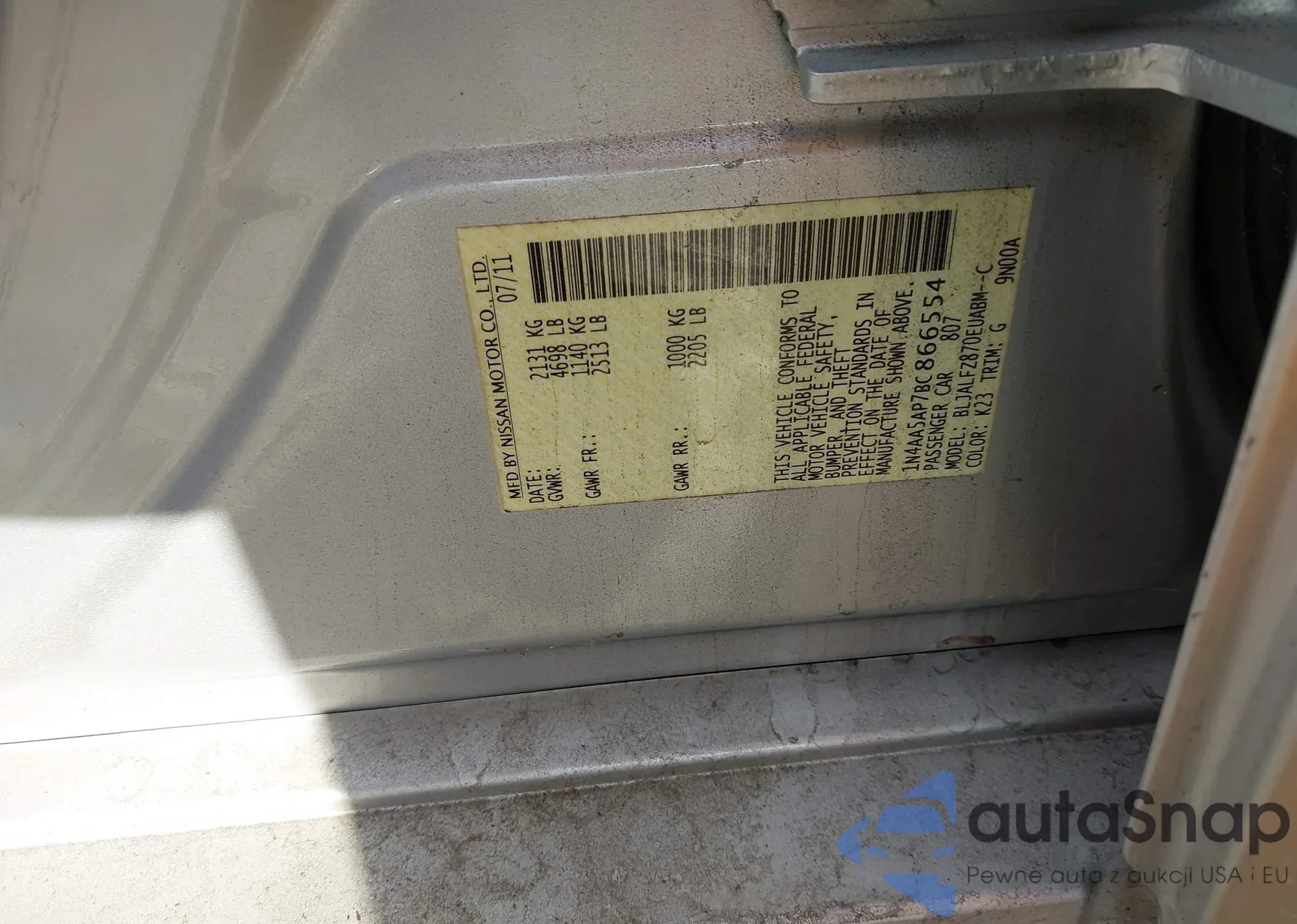 • VIN 1N4AA5AP7BC866554