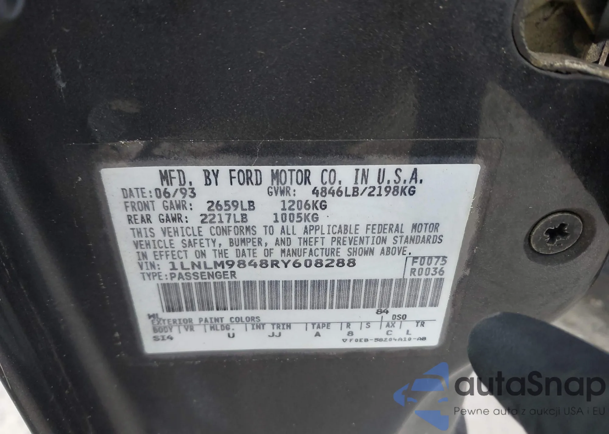 • VIN 1LNLM9848RY608288