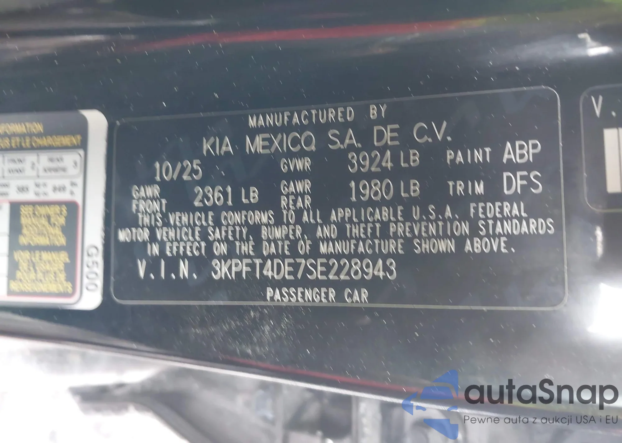 • VIN 3KPFT4DE7SE228943